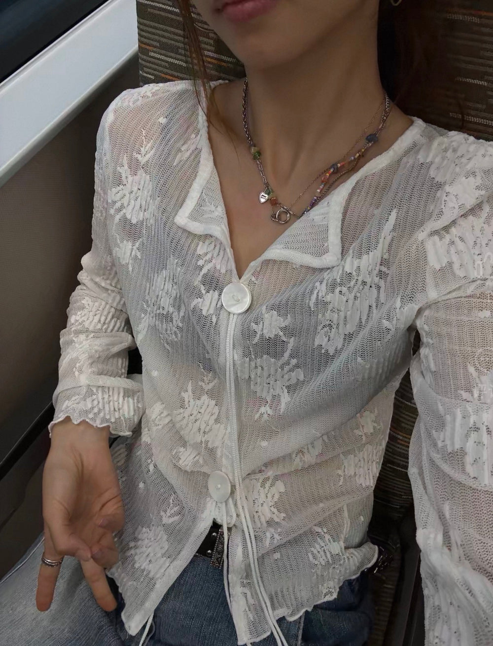 メロウフリルシアージャガードカーディガン