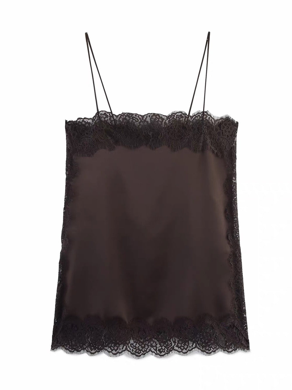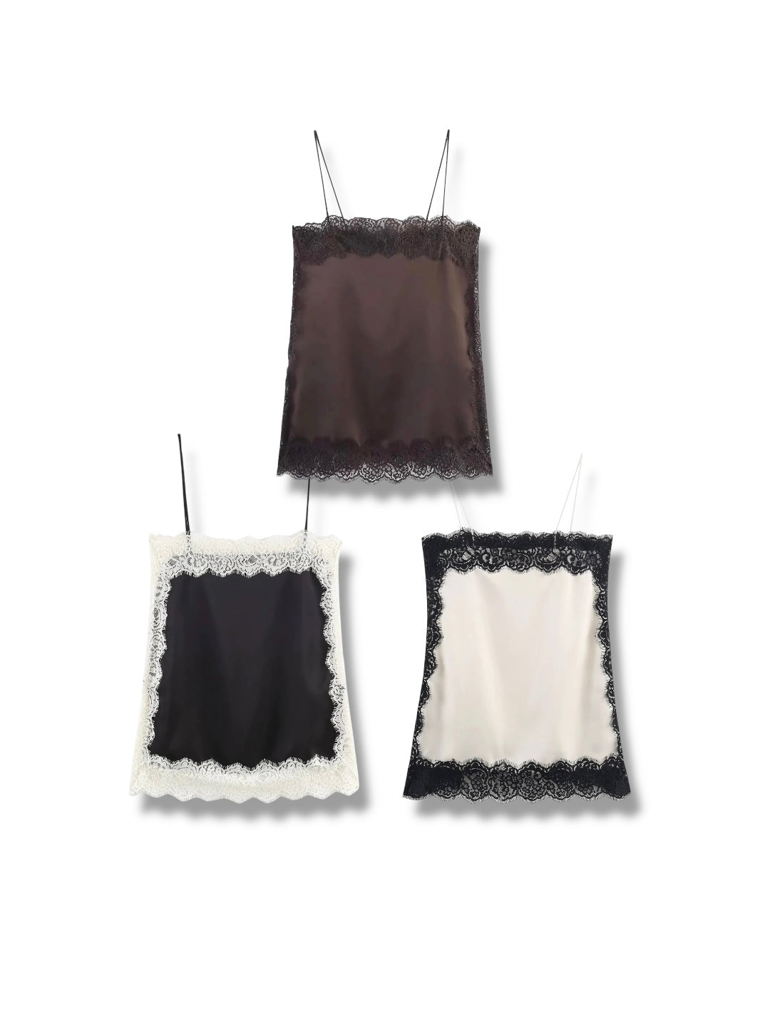 レーストリムサテンキャミソールトップス