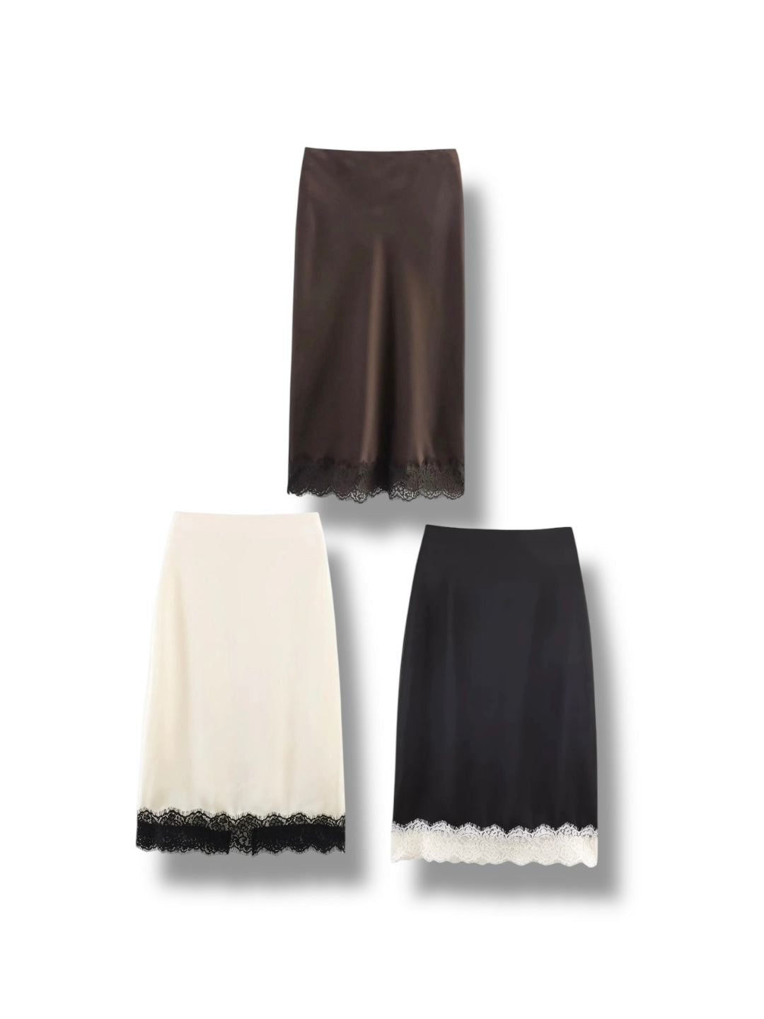 レーストリムスリットサテンミディスカート