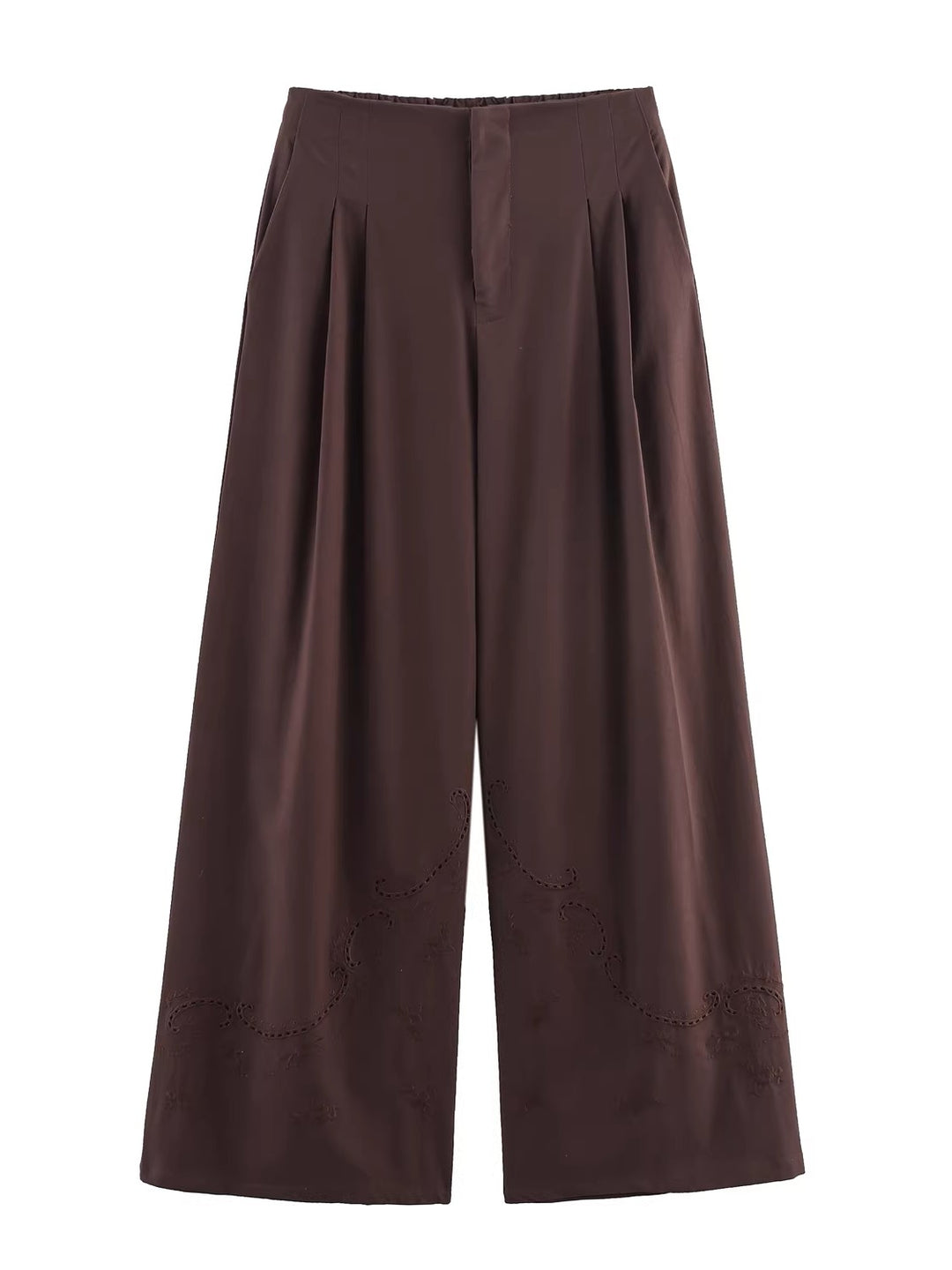 エンブロイダリータックワイドレッグパンツ