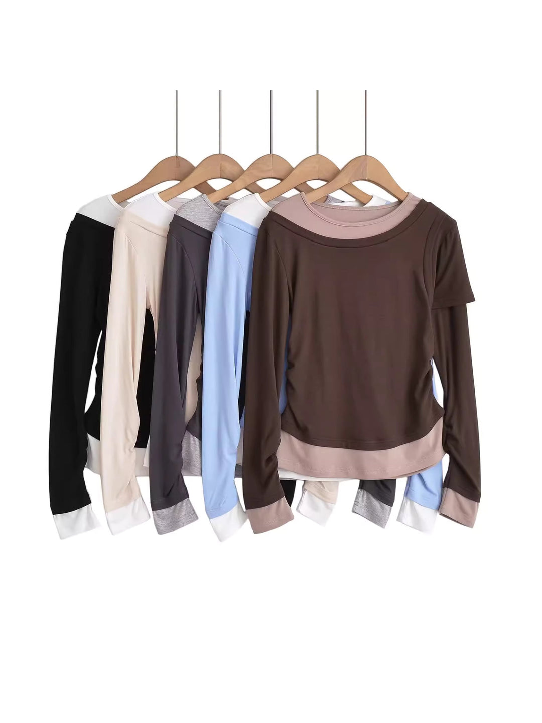 バイカラーレイヤードデザイントップス