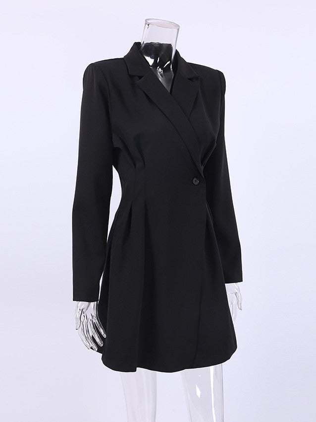 マニッシュさとエレガントさを兼ね備えたクラシックなジャケットワンピース。