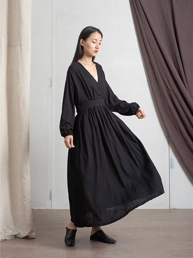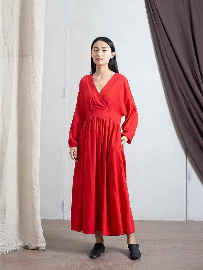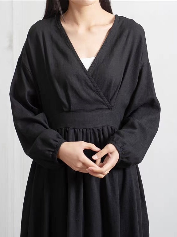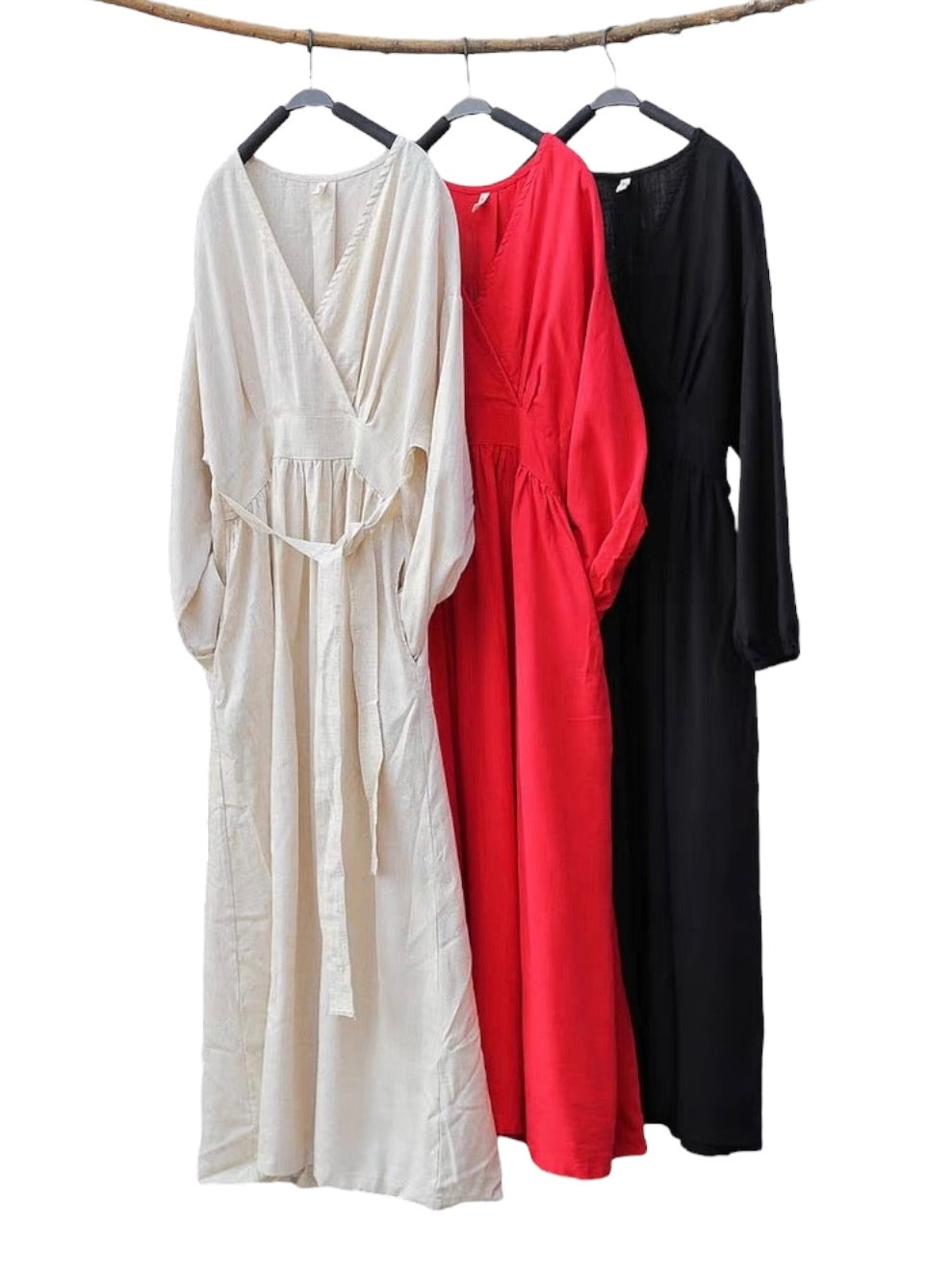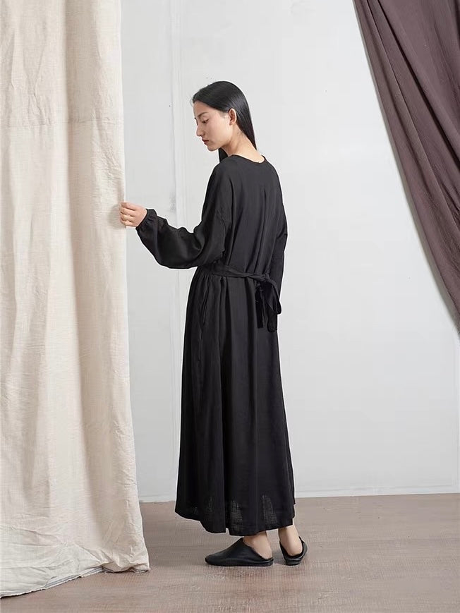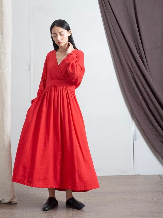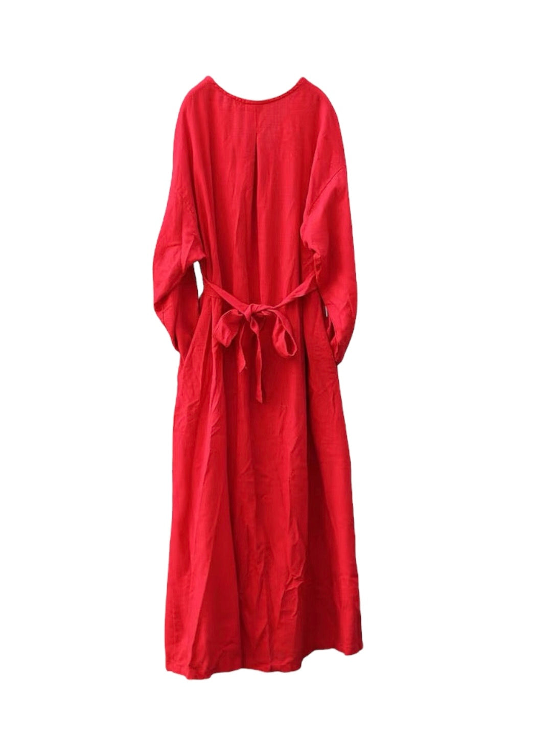 ナチュラルリネンフレア切り替えロングワンピースです。