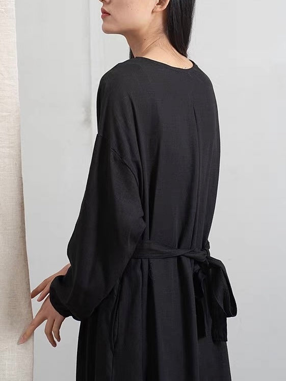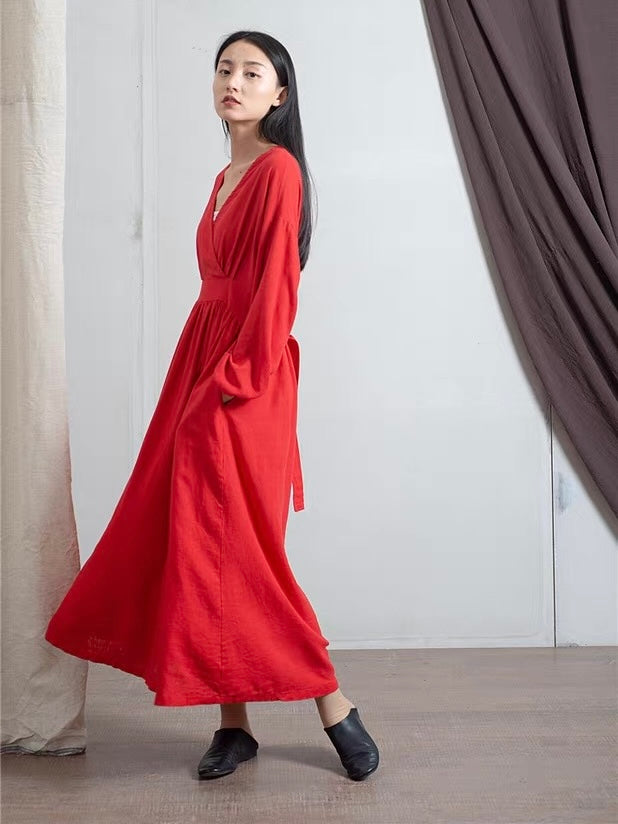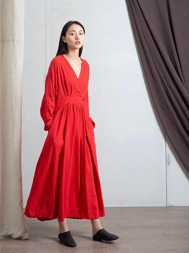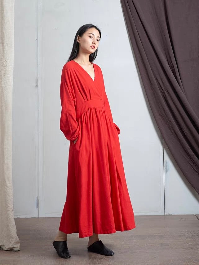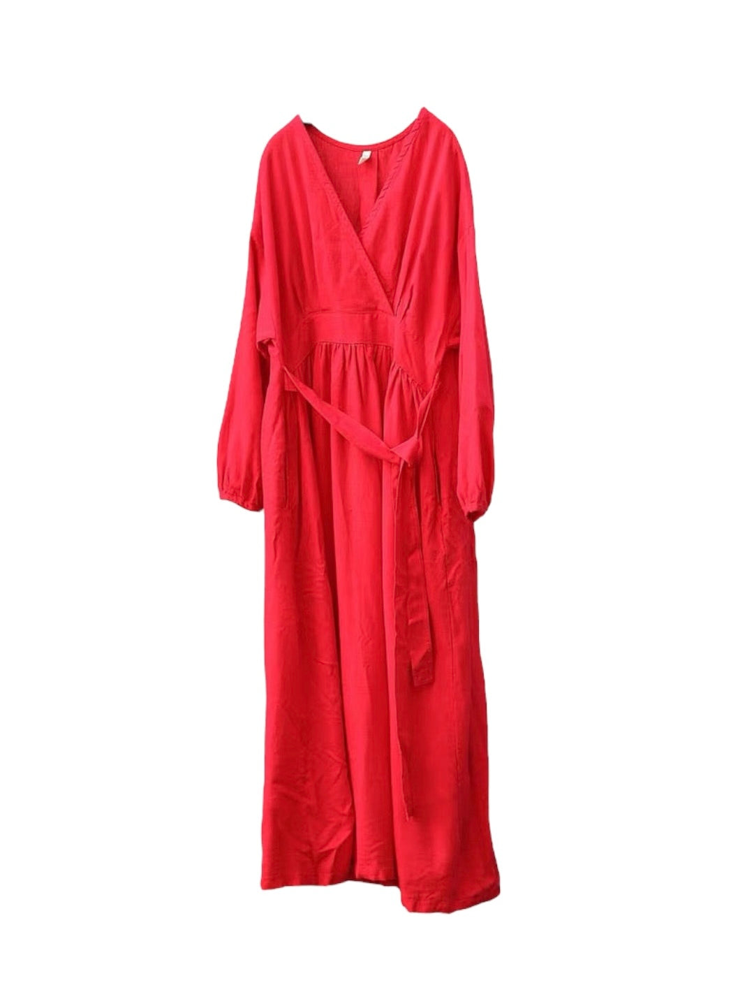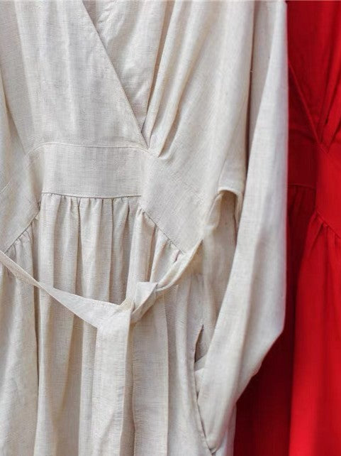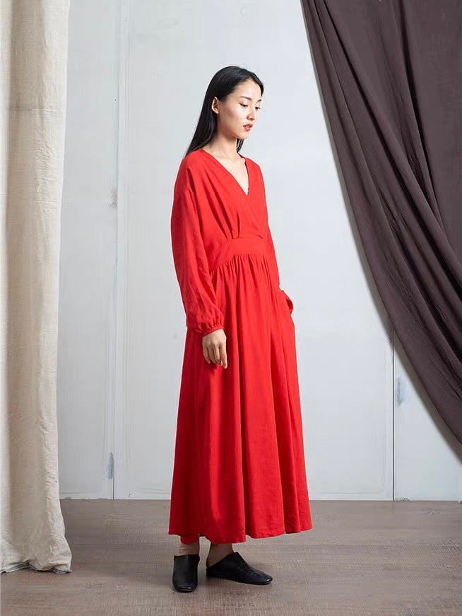ナチュラルリネンフレア切り替えロングワンピースです。
