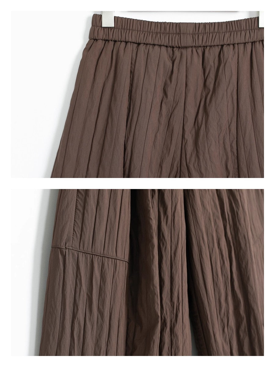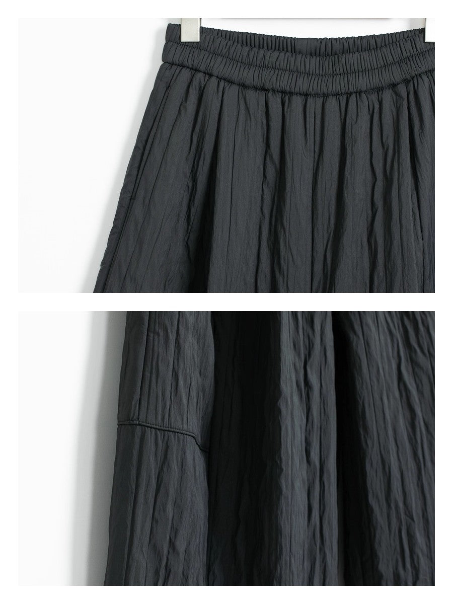 ウエストは総ゴムで楽ちん、ワイドシルエットでも広がりすぎない絶妙なラインで体型カバーとおしゃれ見えを両立しています。