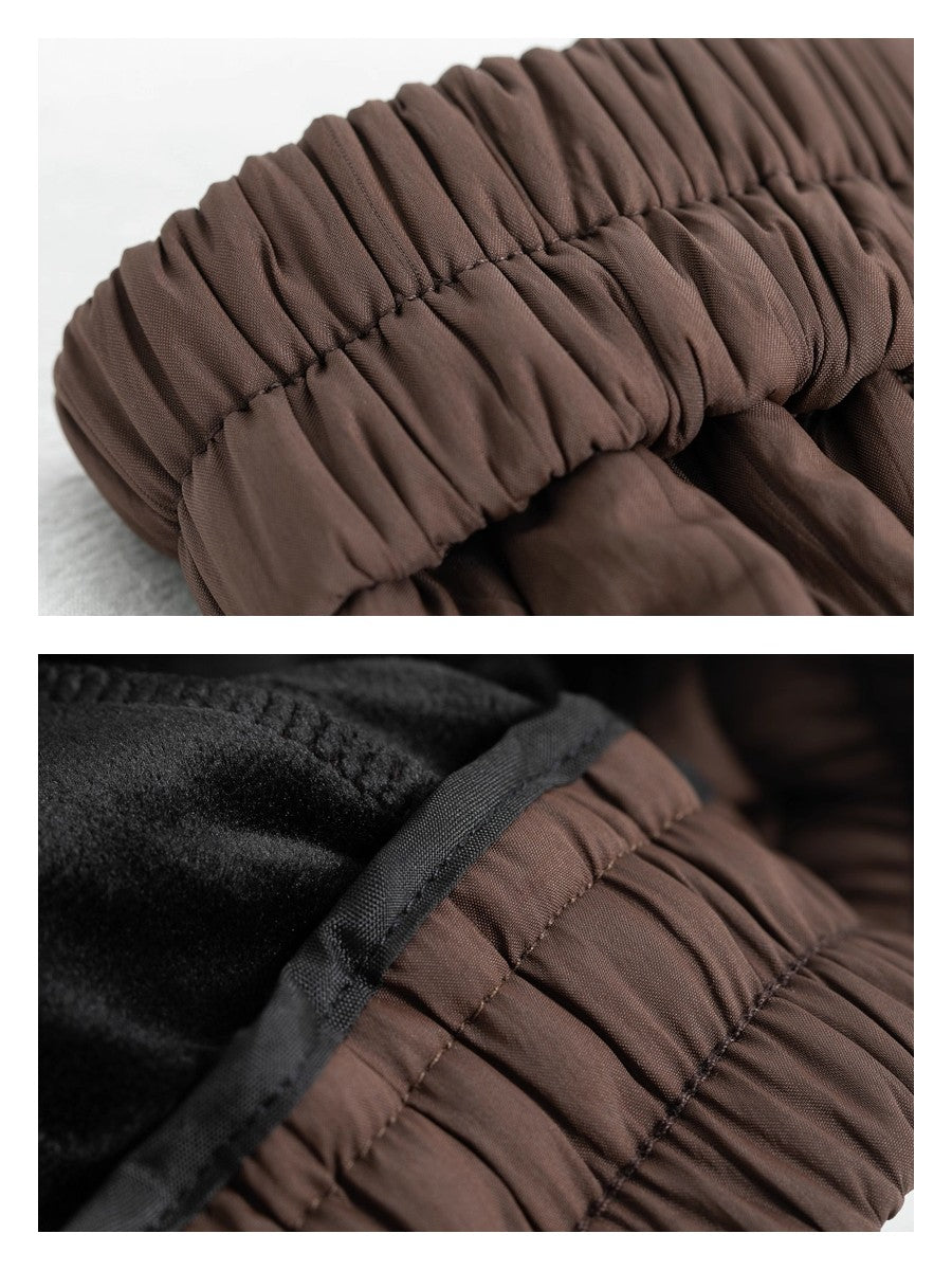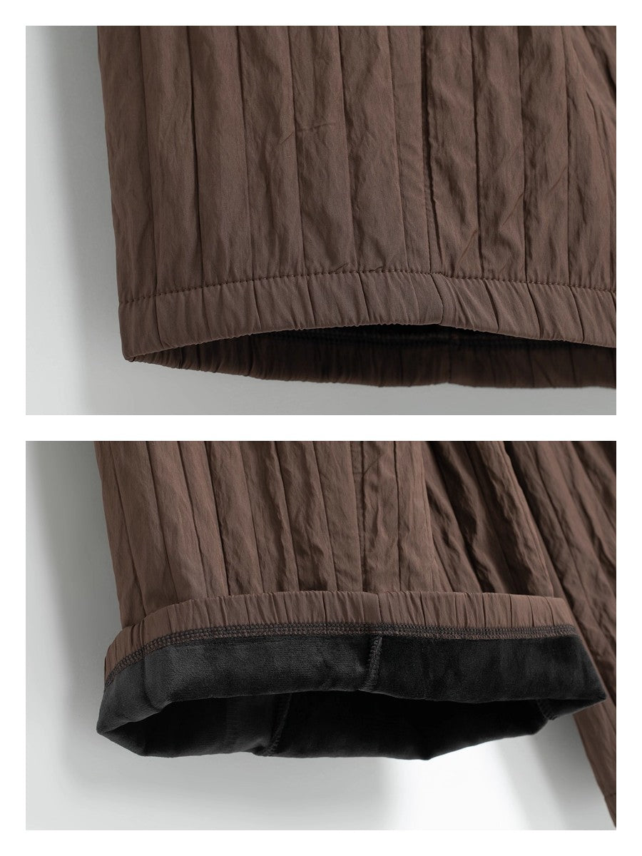 あったか裏起毛フリースで防風・保温力も抜群。軽量で動きやすいキルティング風素材。ゆったりワイドでもスッキリ見える絶妙シルエット。大きめポケットで実用性&デザイン性アップ!ウエスト総ゴムでストレスフリー◎