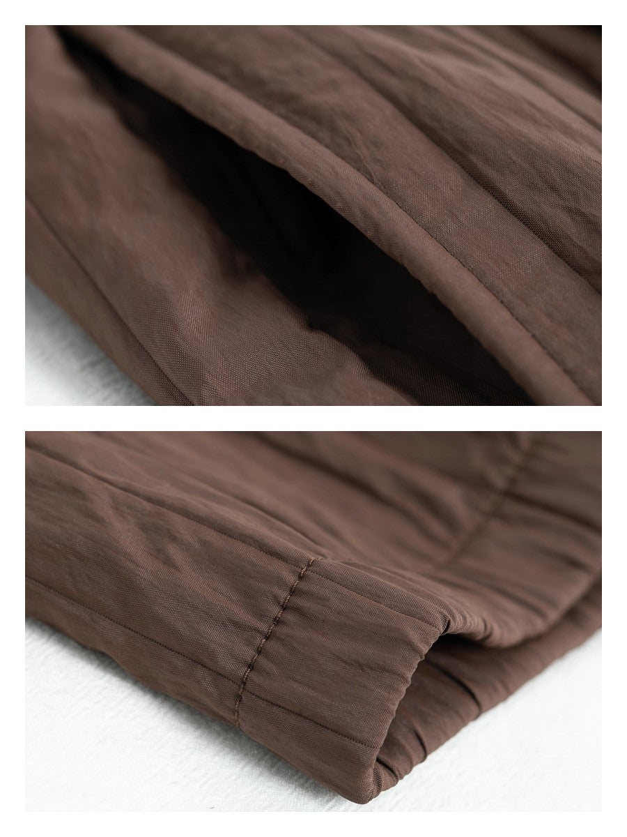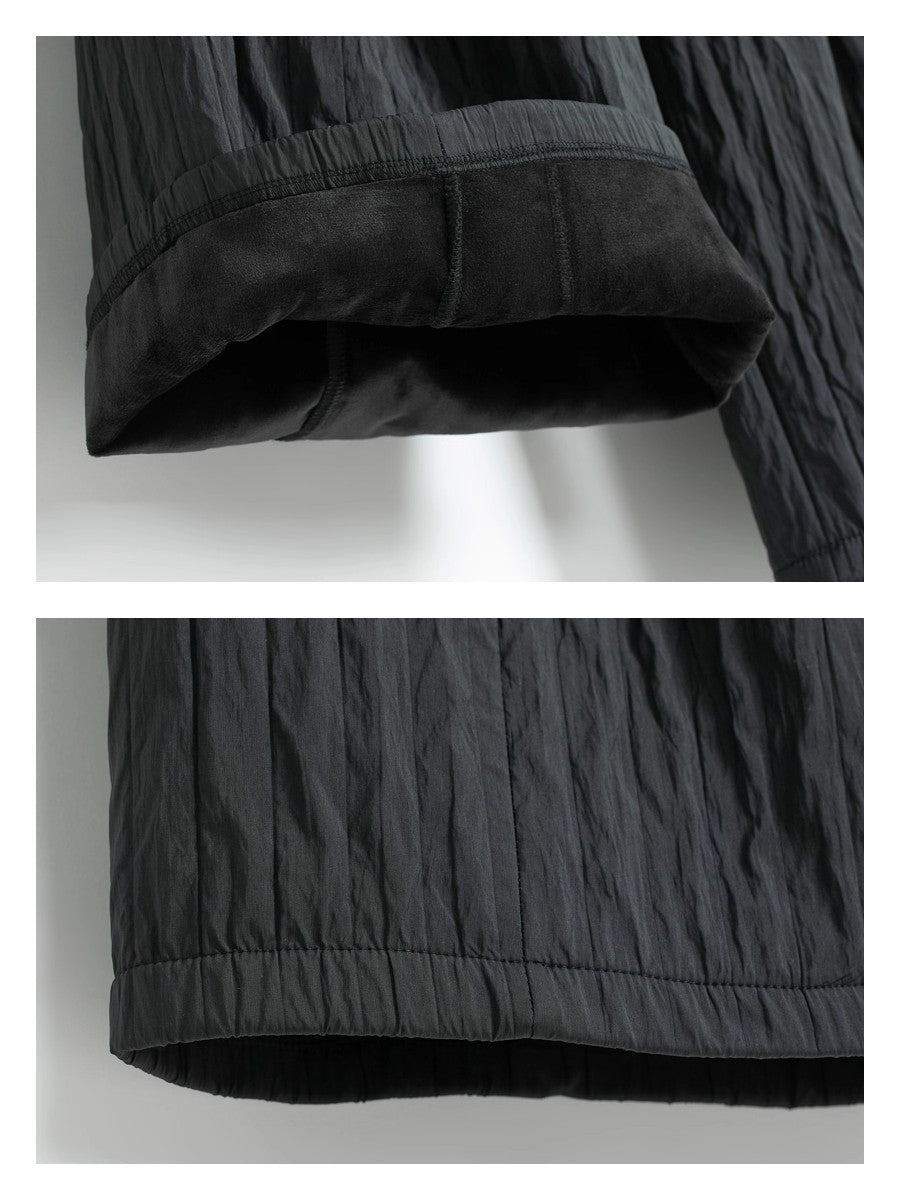 ふんわり軽くしっかり暖かい!表面はナチュラルなしわ感が魅力の軽量素材、内側は全面 裏起毛フリースで冷たい風を通しにくく快適な暖かさ。