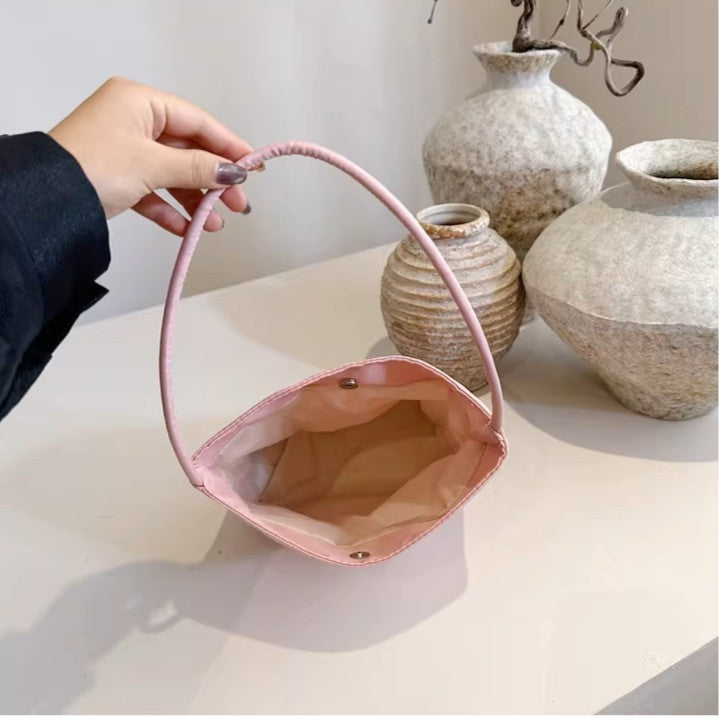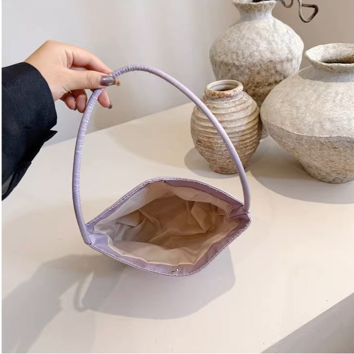 ワンハンドルの曲線が女性らしいやわらかさをプラスし、コンパクトながらも必要なアイテムをしっかり収納できる絶妙なサイズ感で、ちょっとしたお出かけからカフェタイム、サブバッグとしても活躍します。