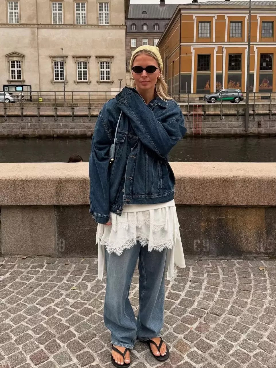 細めのストラップとゆったりとしたラインで、リラックス感と女性らしさを実現◎