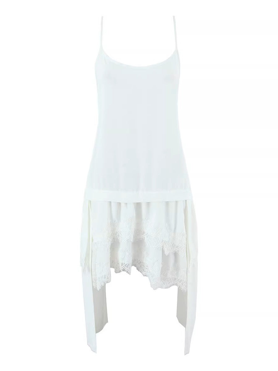 レースレイヤードアシンメトリーキャミワンピースです。