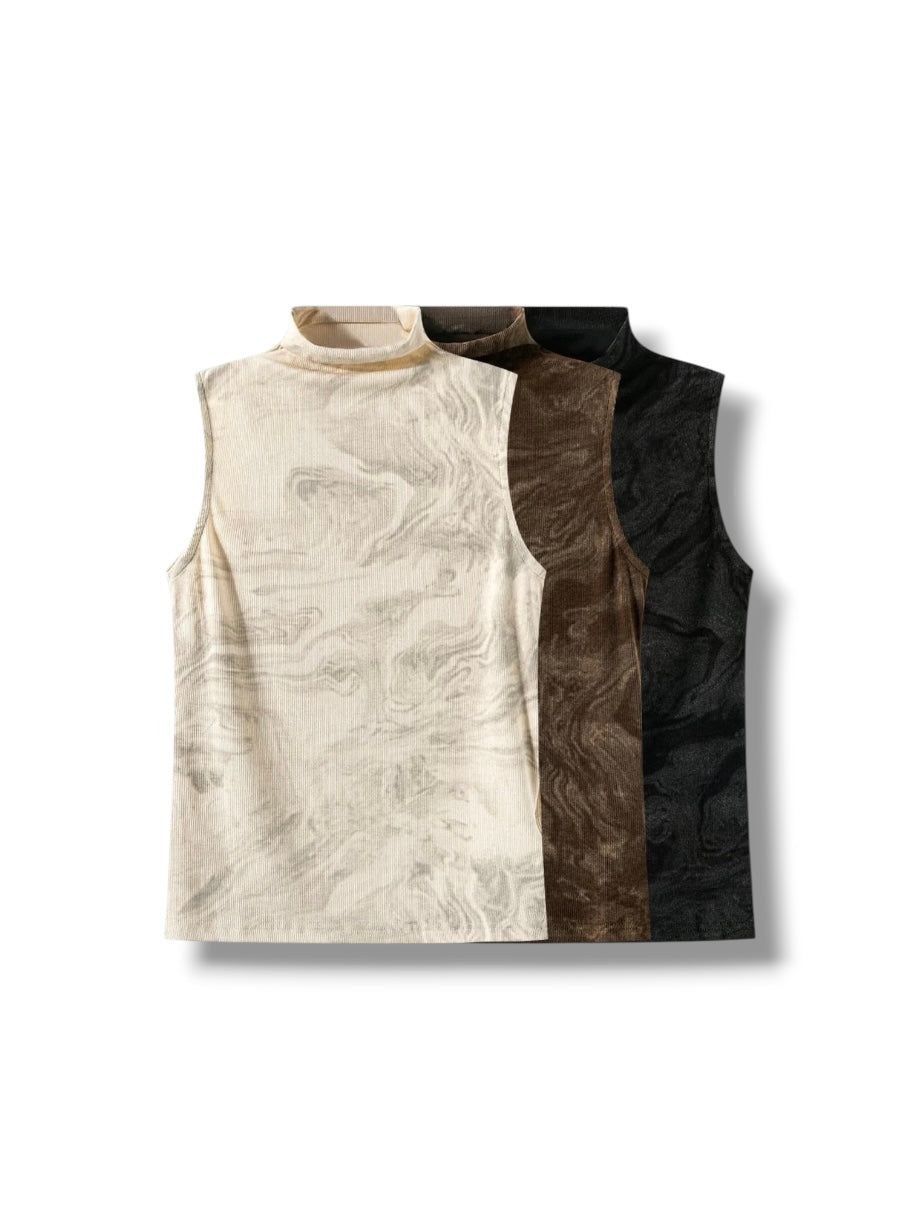 水面に広がる波紋のようなマーブル模様が、シンプルなシルエットに奥行きと表情を与え、着るだけで洗練された雰囲気を演出します。