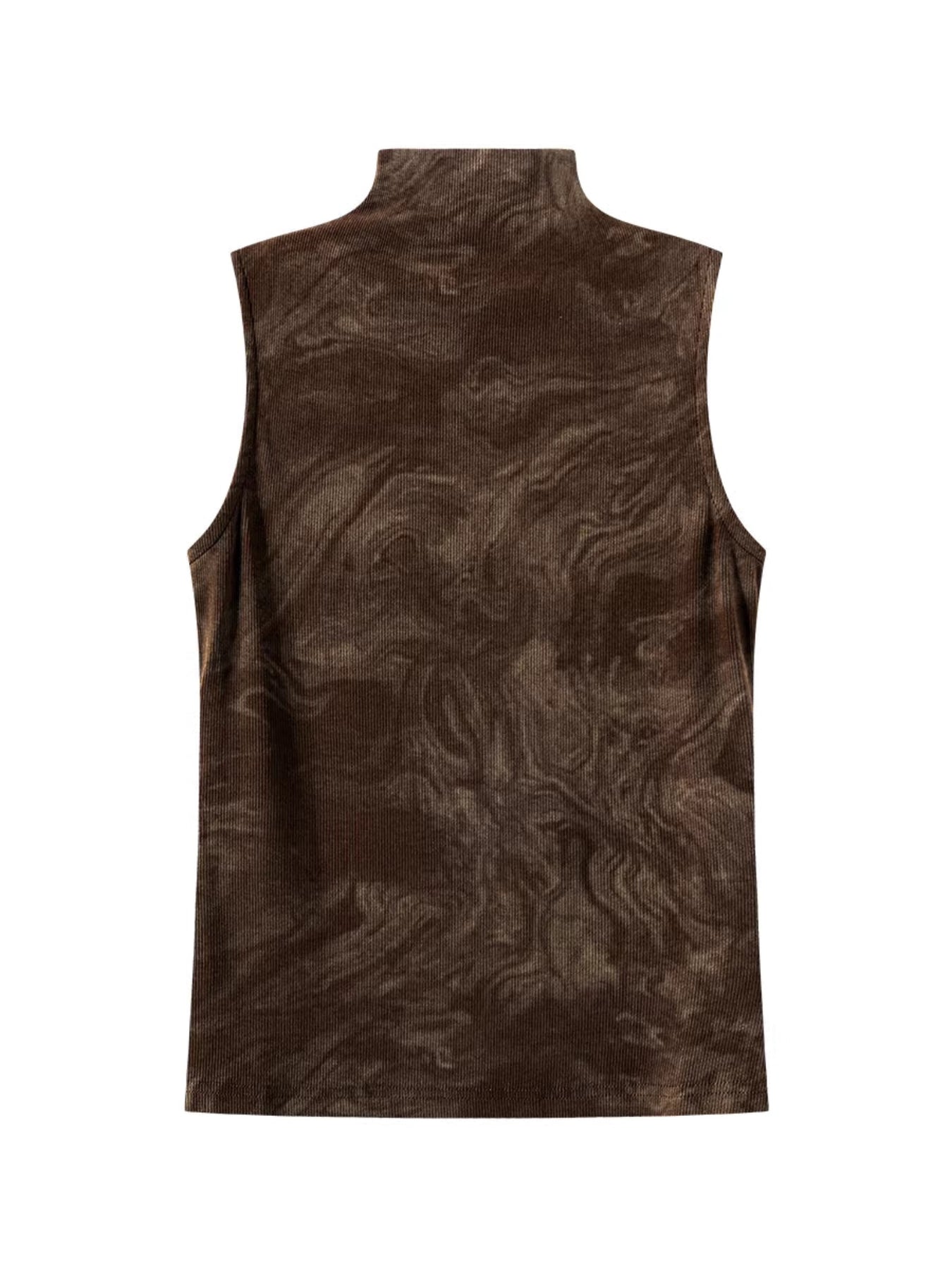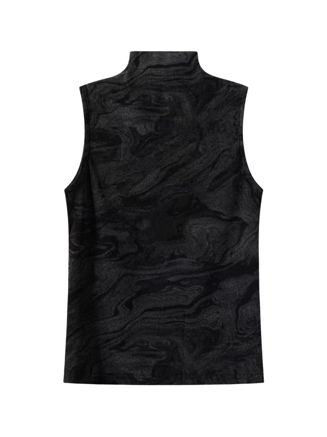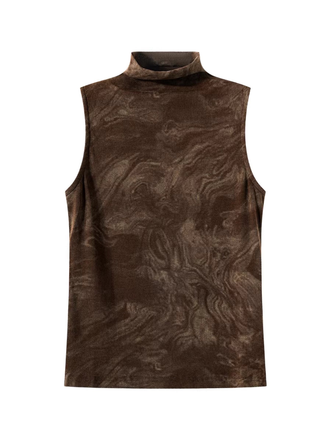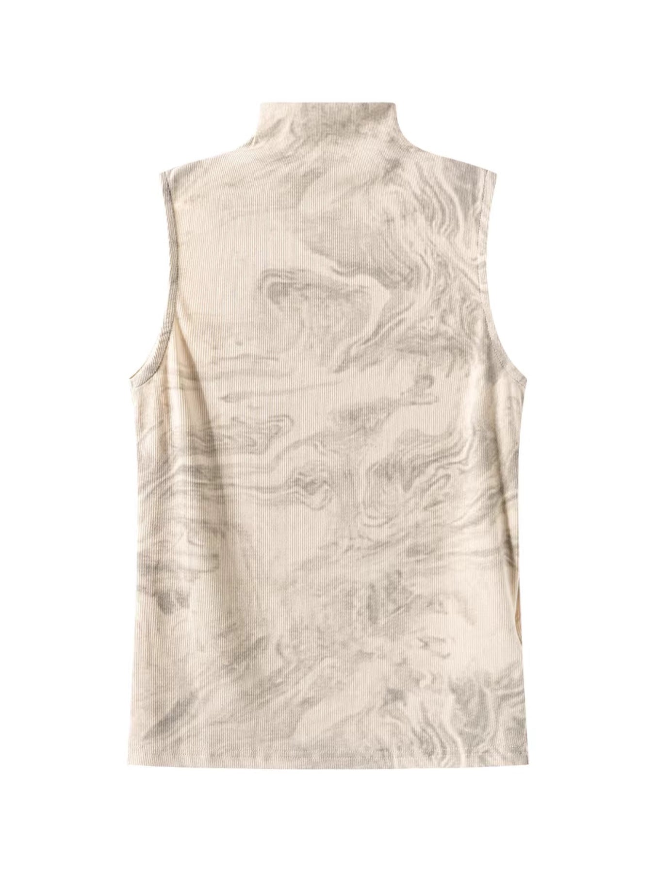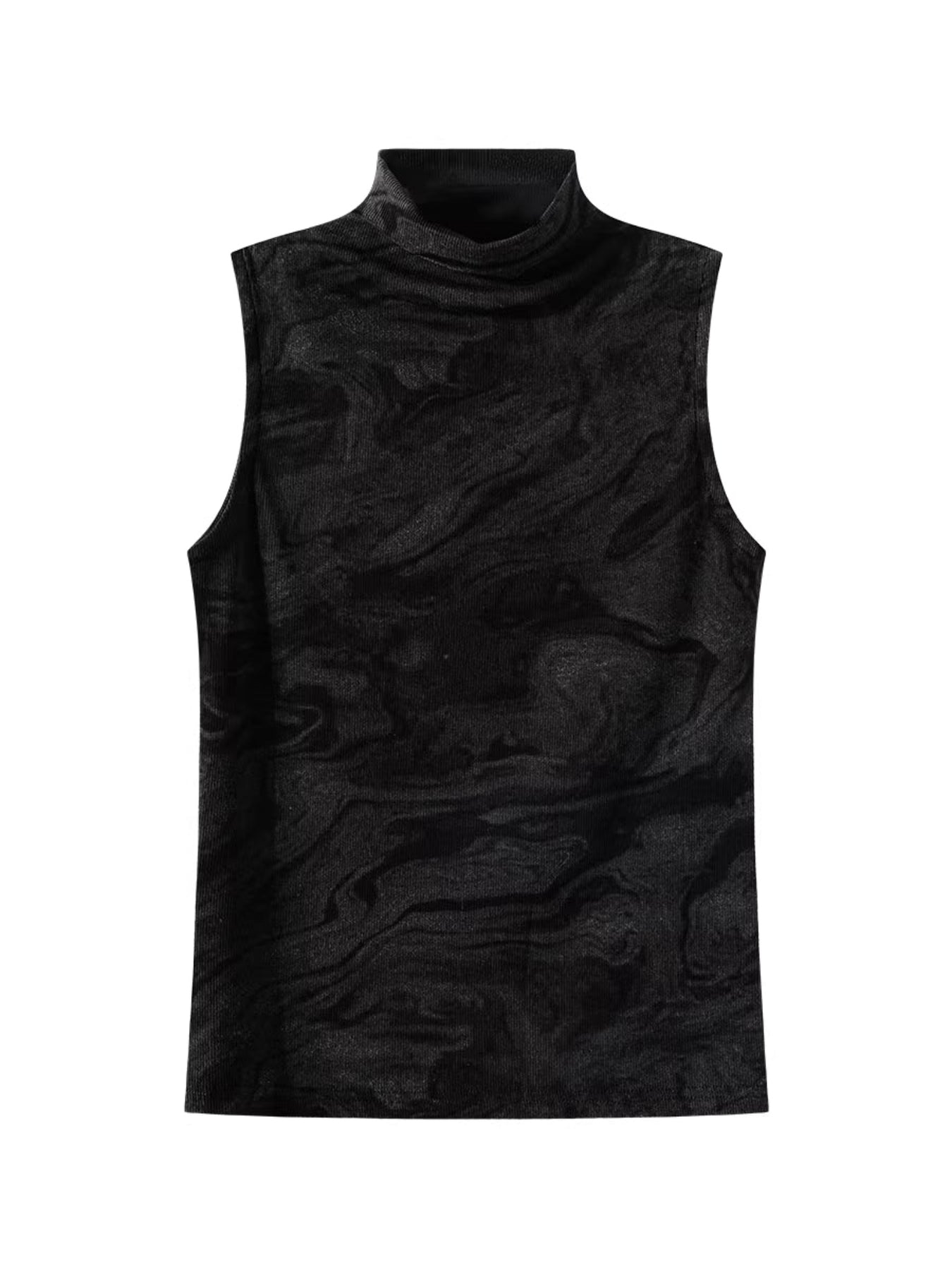 やわらかなニュアンス柄が静かに印象を残す、上品なハイネックトップス。