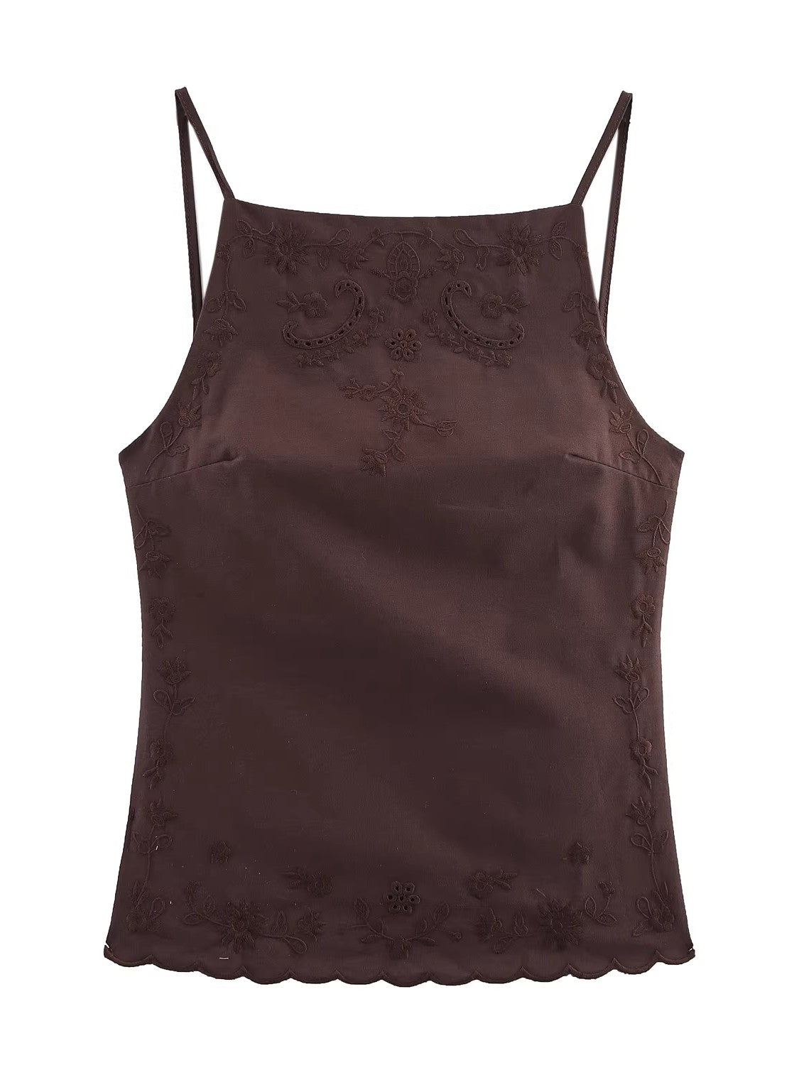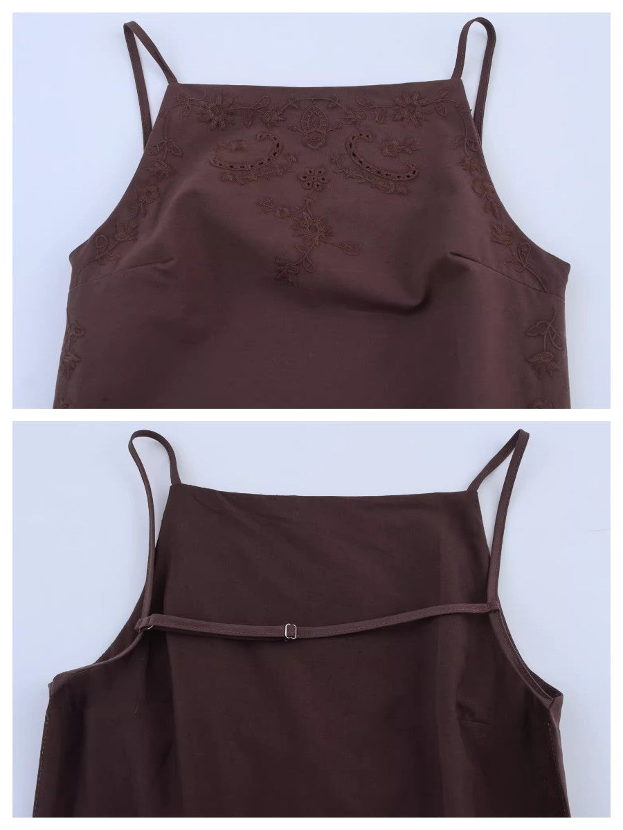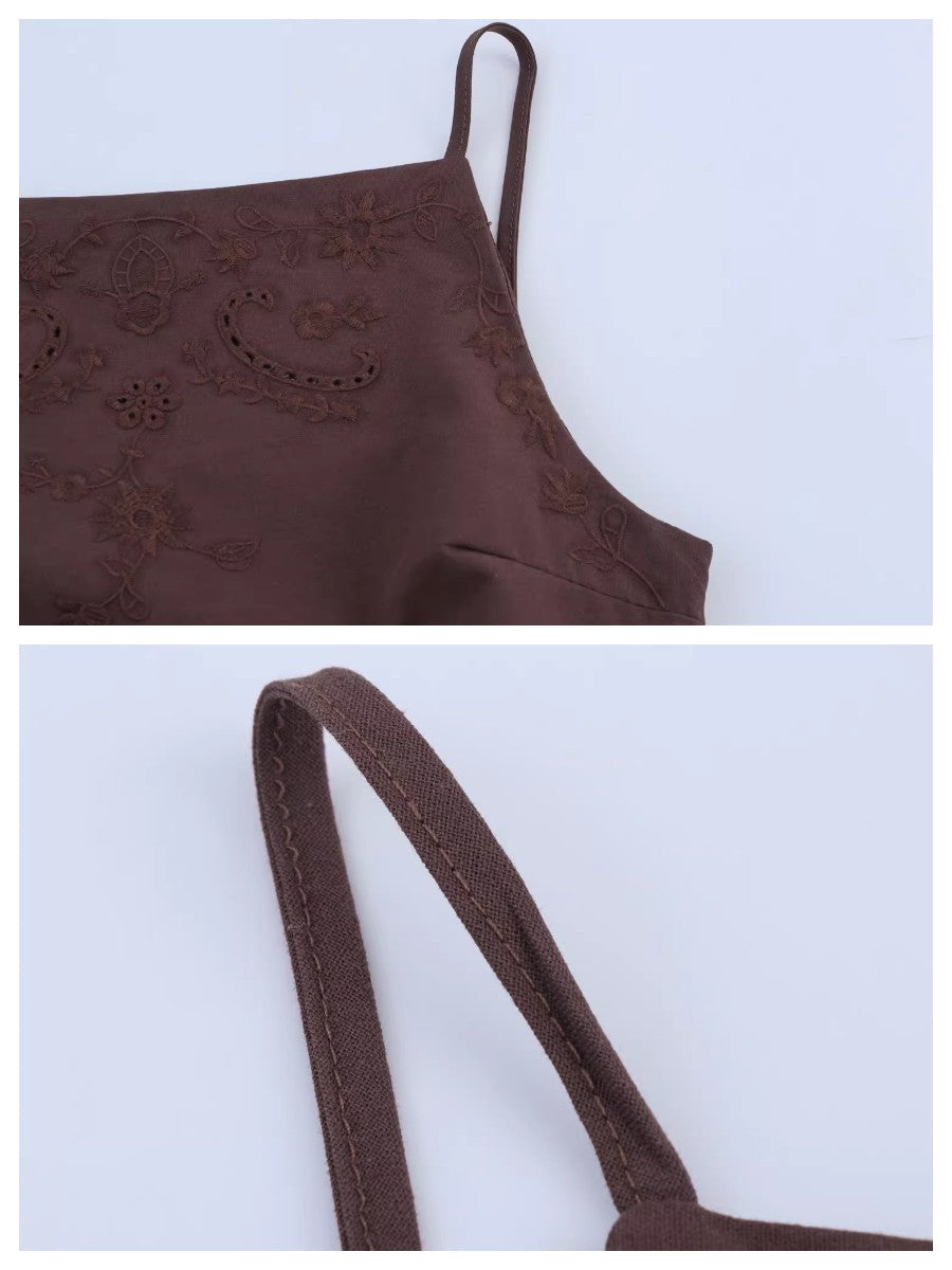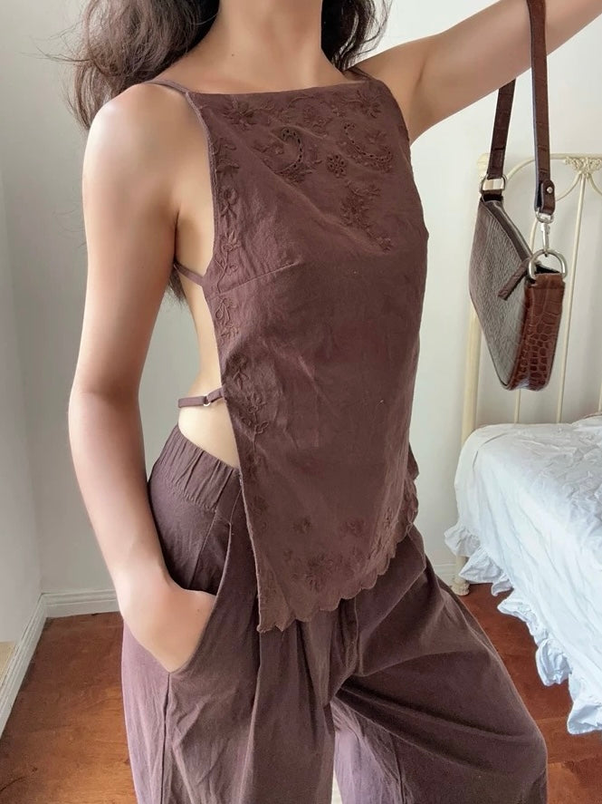 エンブロイダリーバックオープンキャミソールトップス