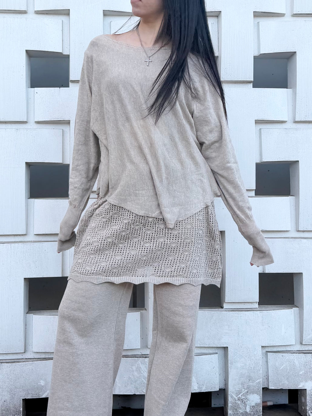【アウトレット】(即納) レイヤードスカートドッキングニットパンツ