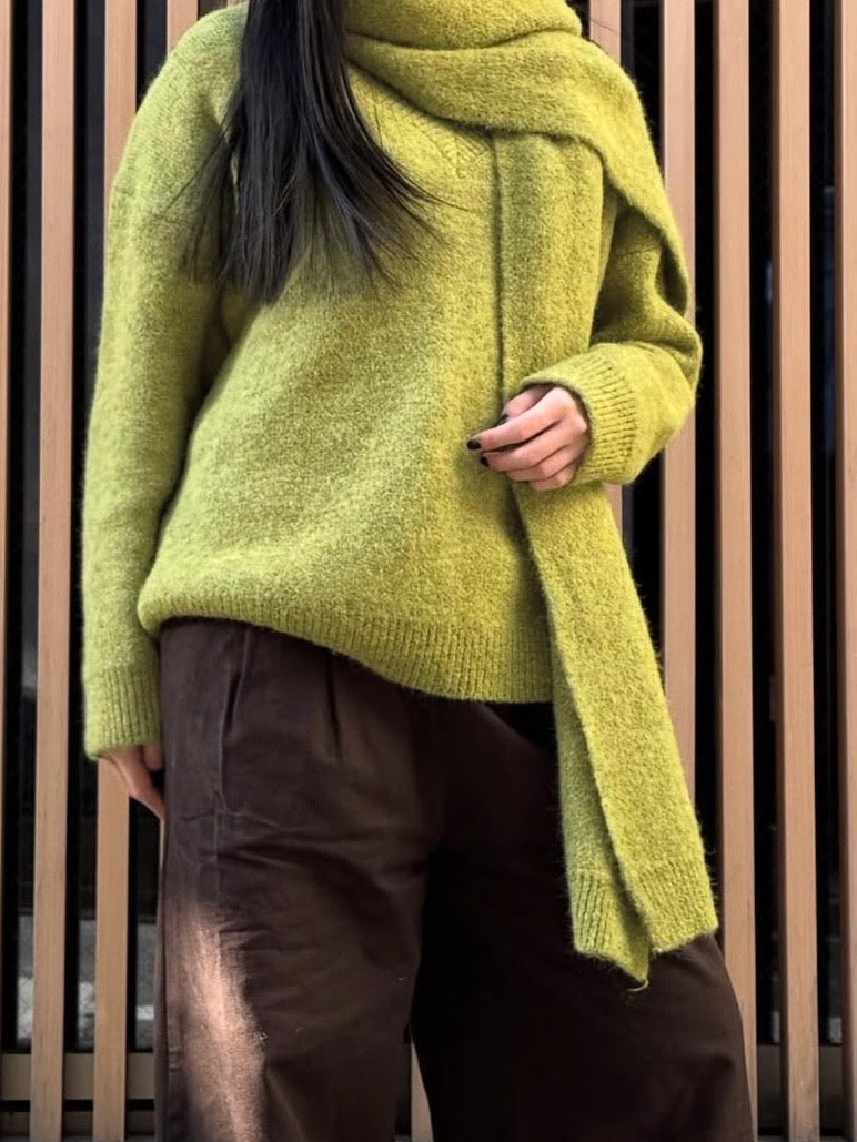 【アウトレット】(即納) マフラー付きVネックセーター