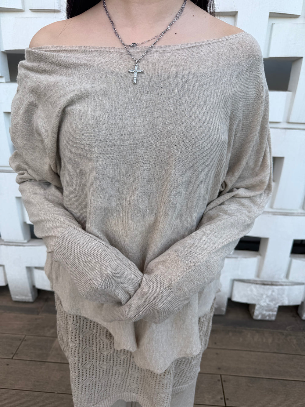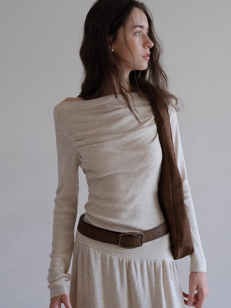 【アウトレット】(即納) ウール混オフショルドレープトップス