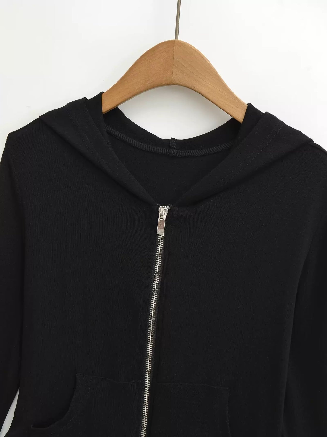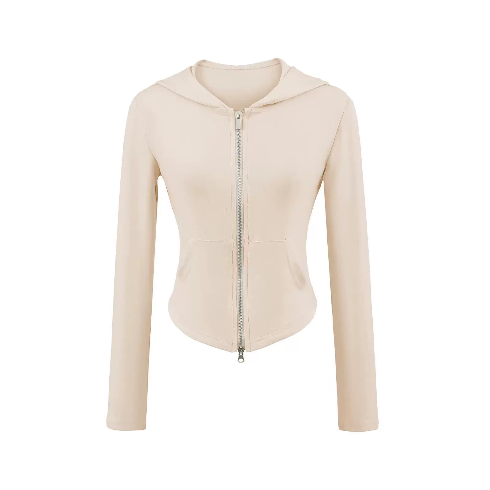 旬なシルエットのジャストサイズで、ベーシックなジップアップパーカーです。