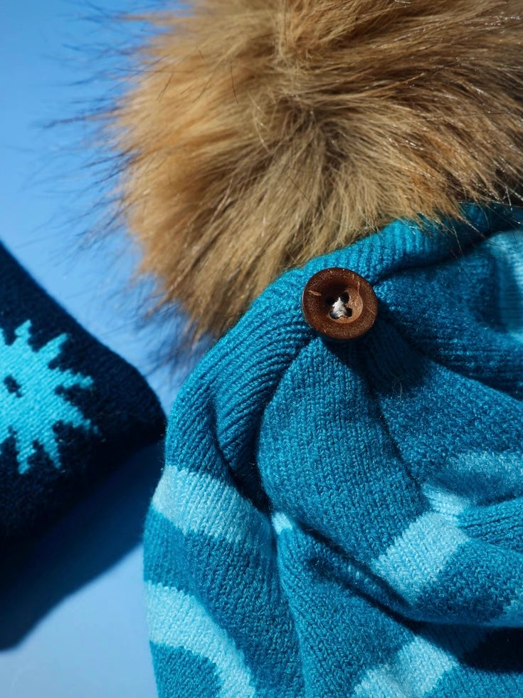 小さなニュアンスアート柄がポイントで、ファーのポンポンが付いたニットCapです。