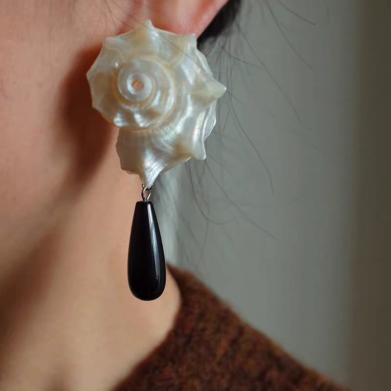 そこに、艶やかに輝くオニキスドロップを合わせることで神秘的なコントラストを演出。
