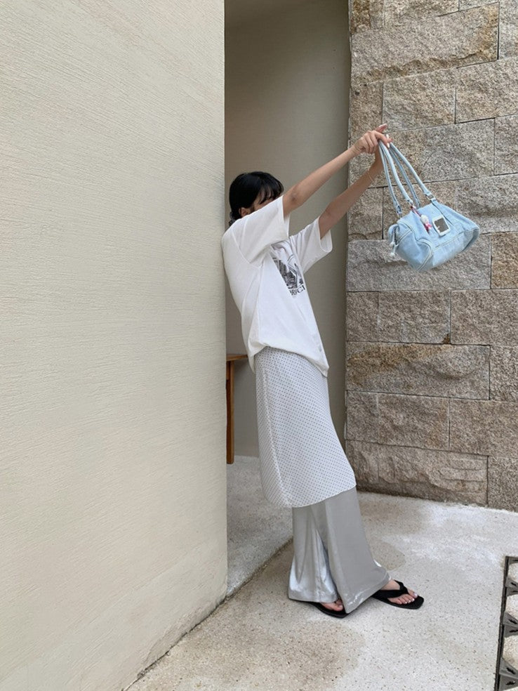 透け感のある素材なので、レイヤードスタイルにピッタリ。まだまだ秋も暑さは続くので、シアーなシフォンスカートから取り入れてみては?