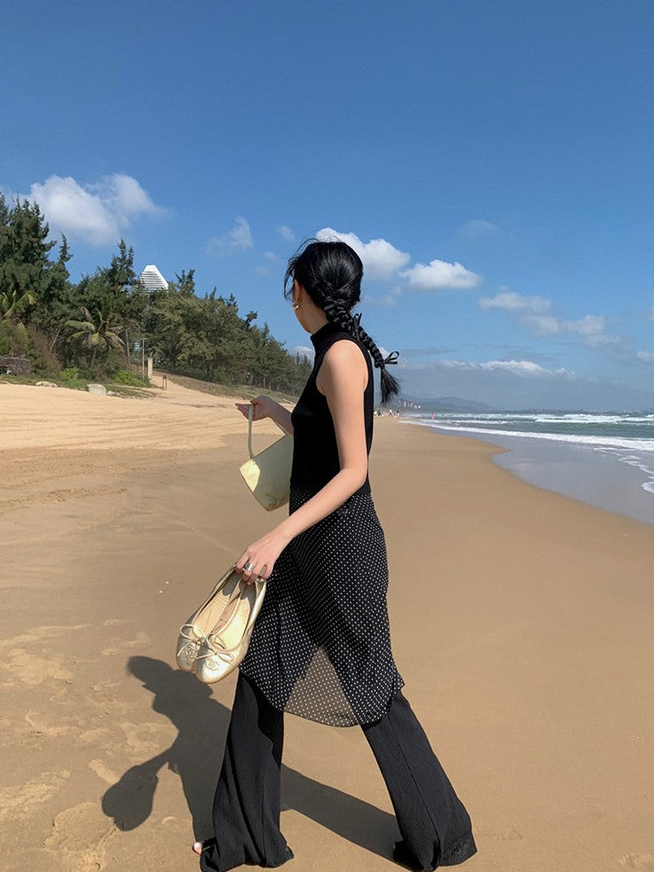 甘過ぎるのが苦手な方は、スニーカーなどと合わせると、ドット柄もカジュアルに着こなせます。