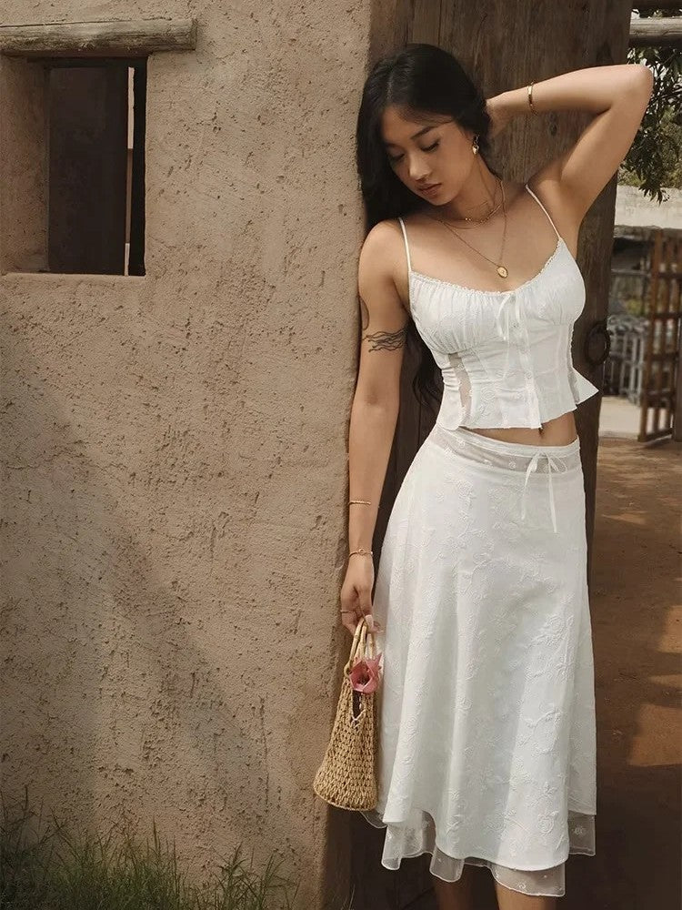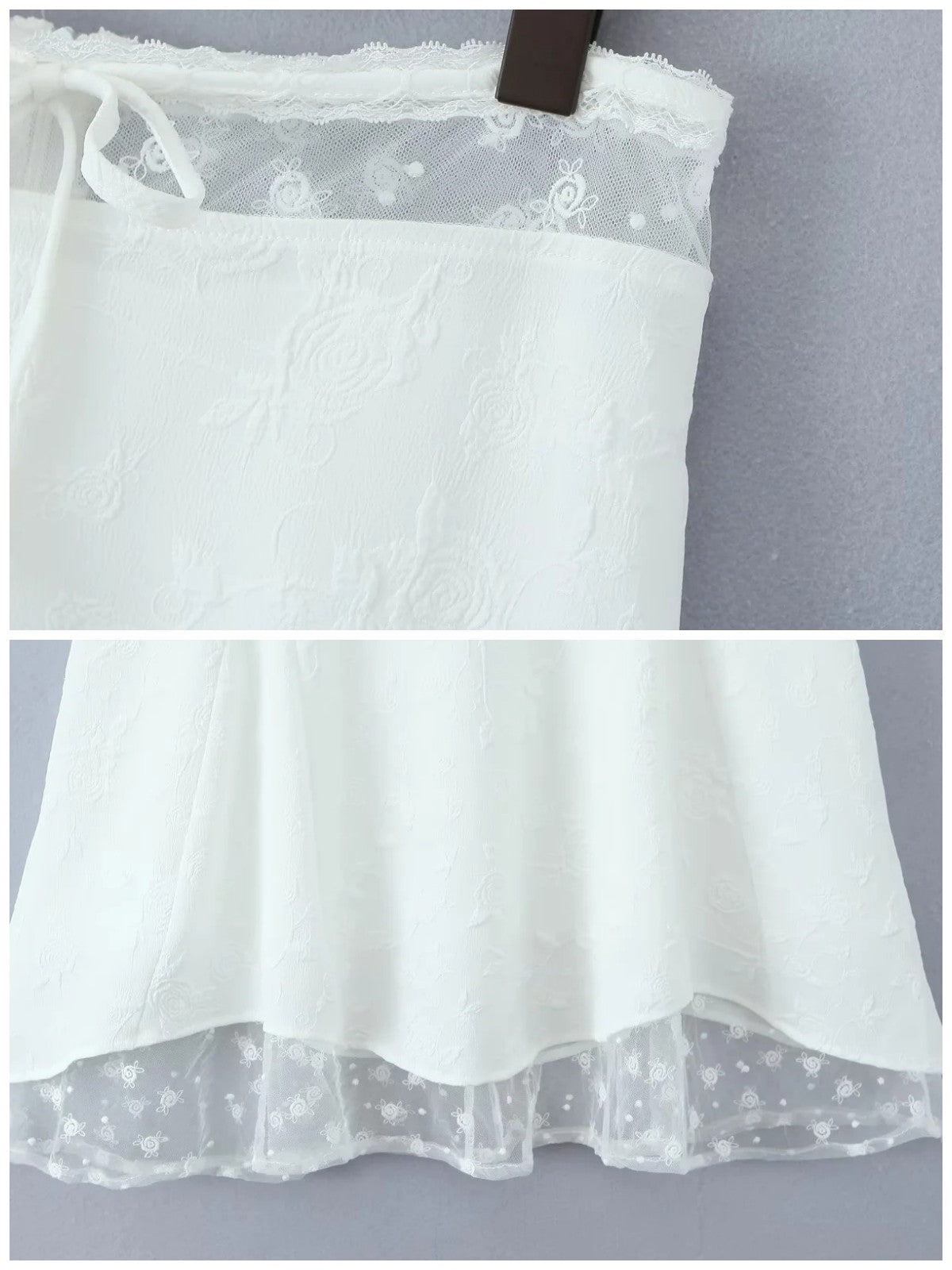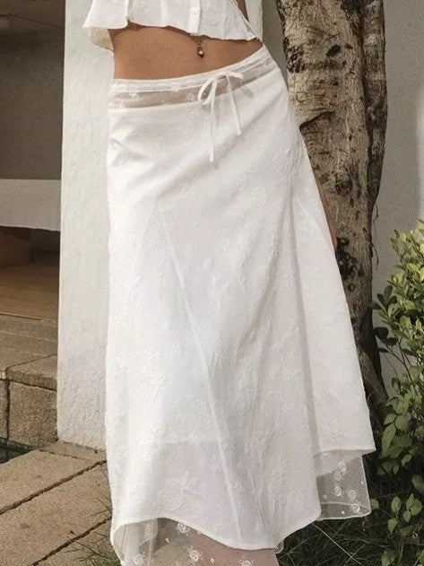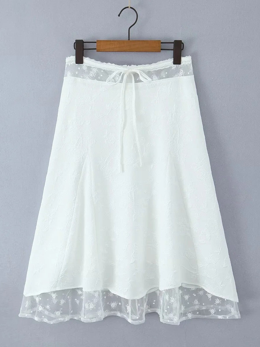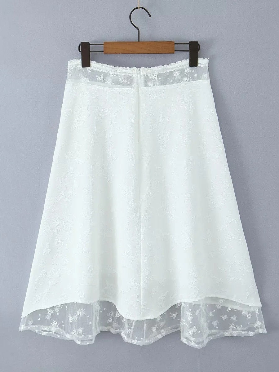 レイヤード風シアーレースミディスカートです。