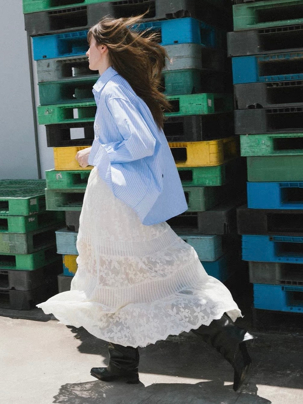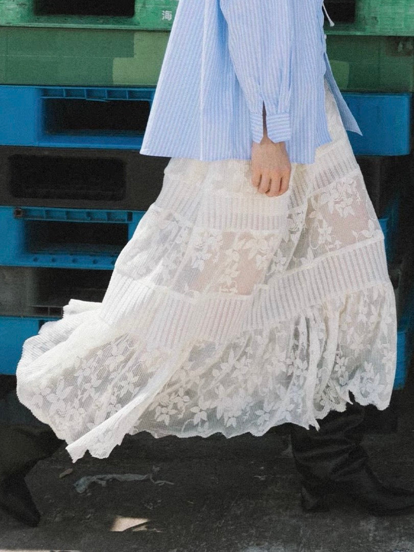 軽やかに揺れるレースが動くたびニュアンスをつくり、ロマンティックで雰囲気のあるスタイルが完成します。