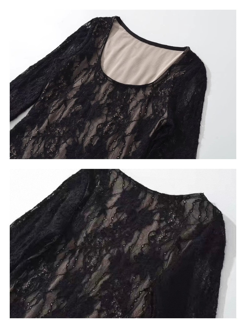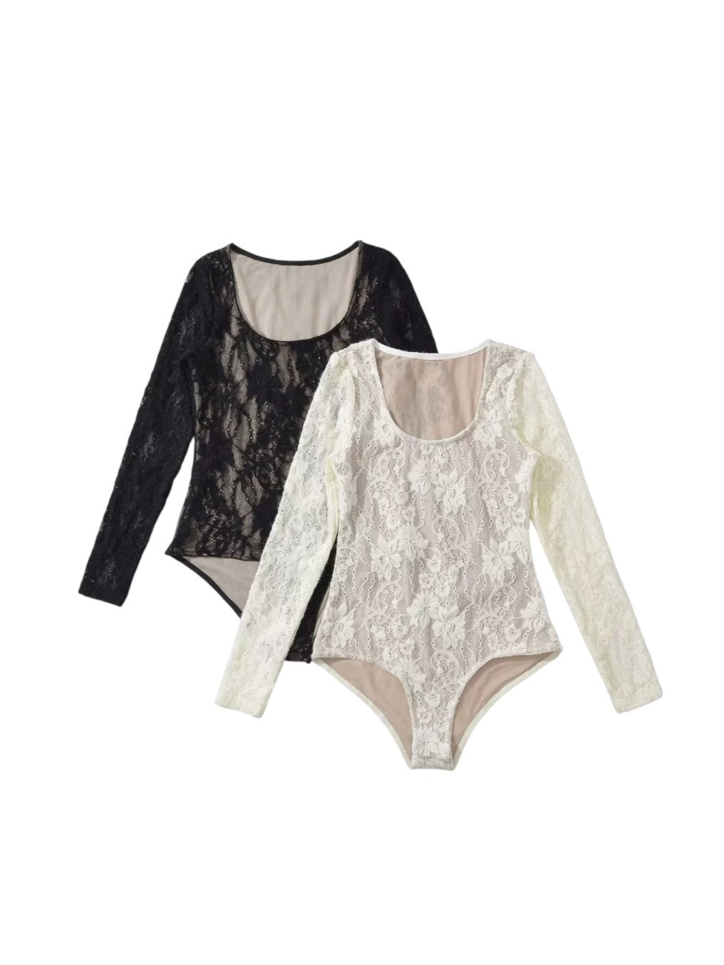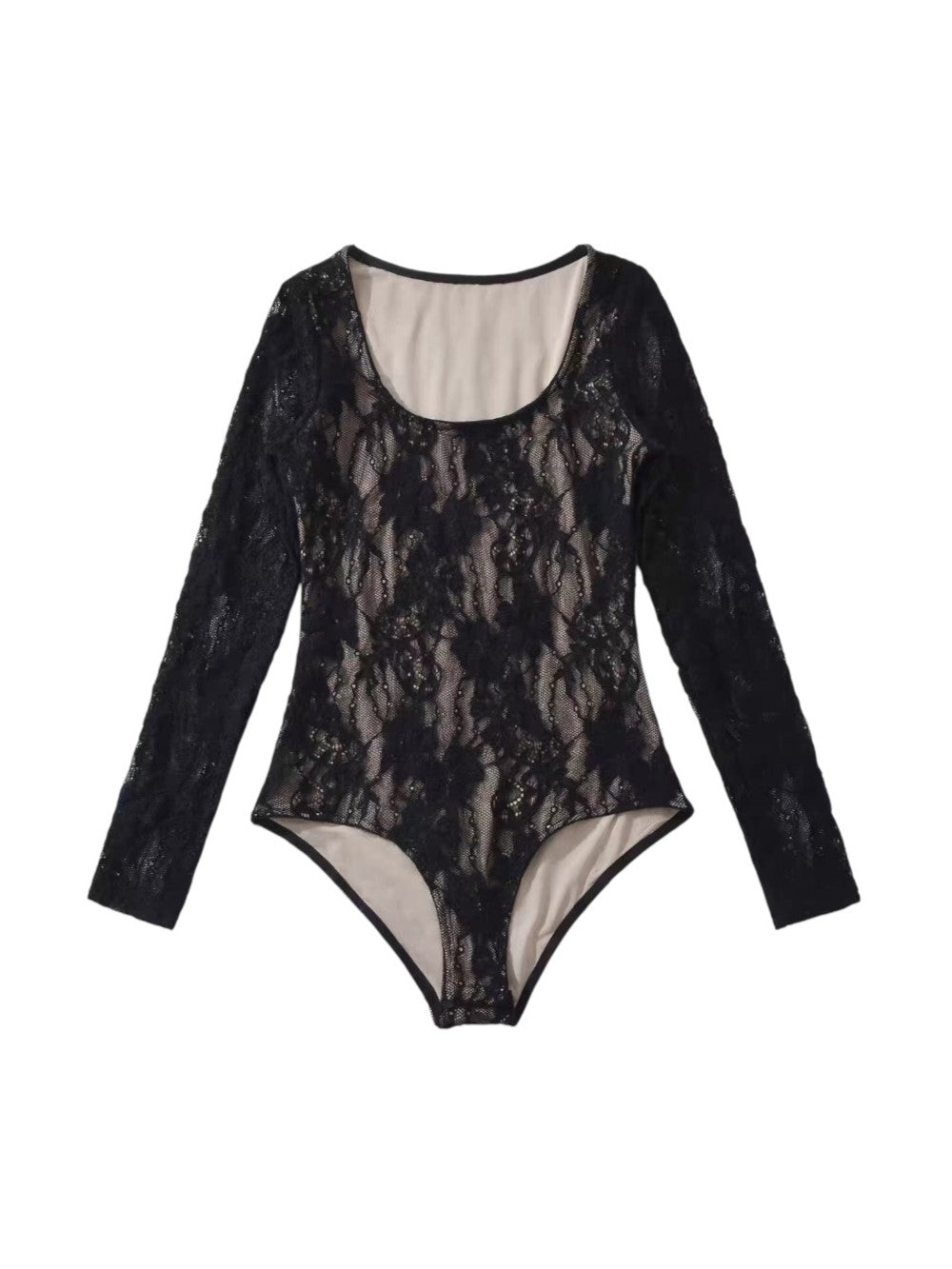 裏地付きなのでインナーも透けずに1枚で着用可能。裏地がベージュカラーなので、素肌感があり抜け感がポイントに◎ボディースーツになっているので、ウエスト周りをスッキリと引き締めてシェイプアップ効果も!