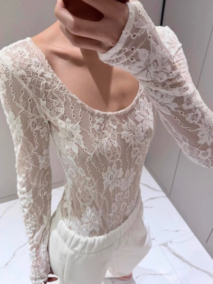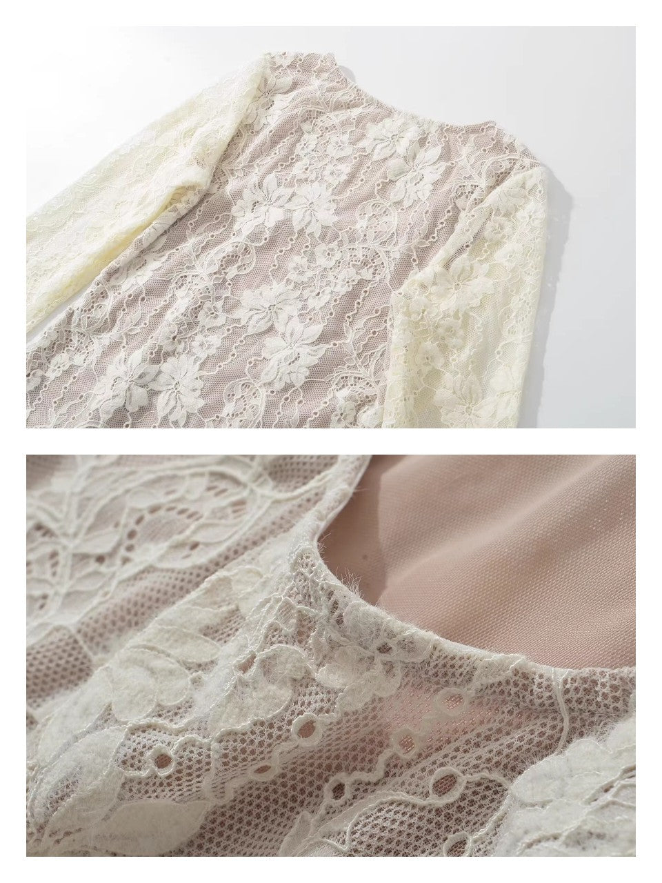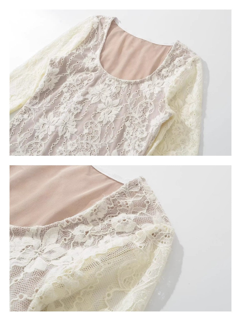 裏地付きなのでインナーも透けずに1枚で着用可能。裏地がベージュカラーなので、素肌感があり抜け感がポイントに◎ボディースーツになっているので、ウエスト周りをスッキリと引き締めてシェイプアップ効果も!