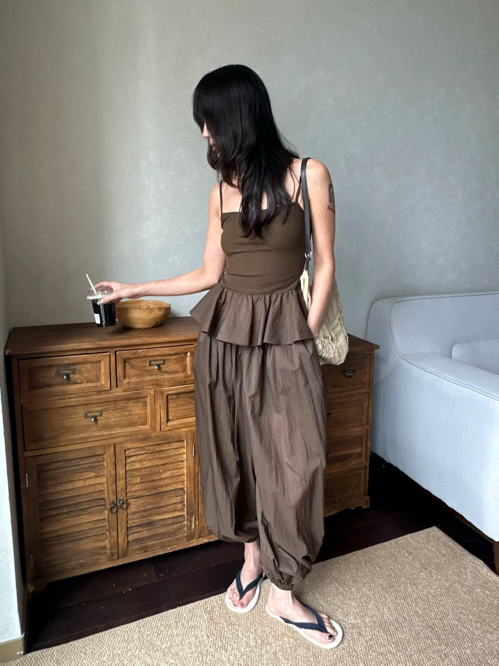 リネンブレンドUネックリブタンクトップ(ビビット)
