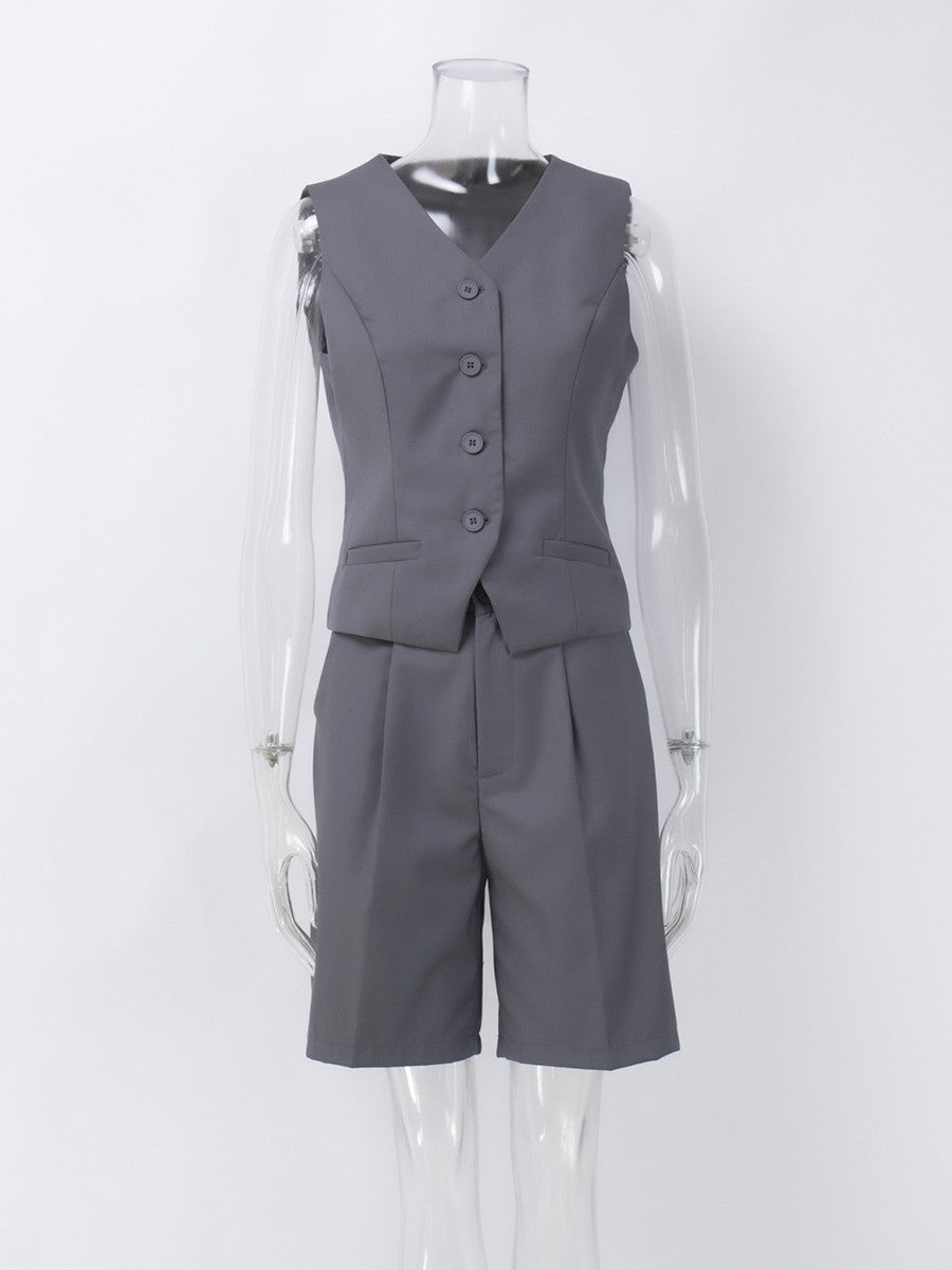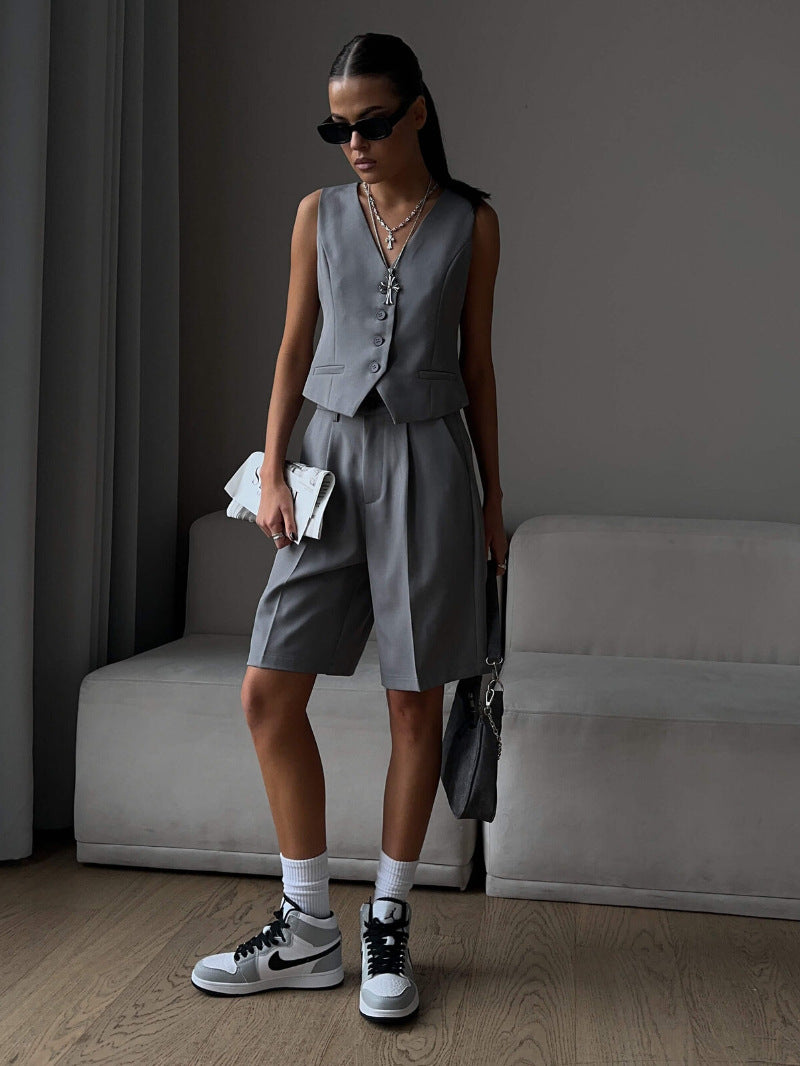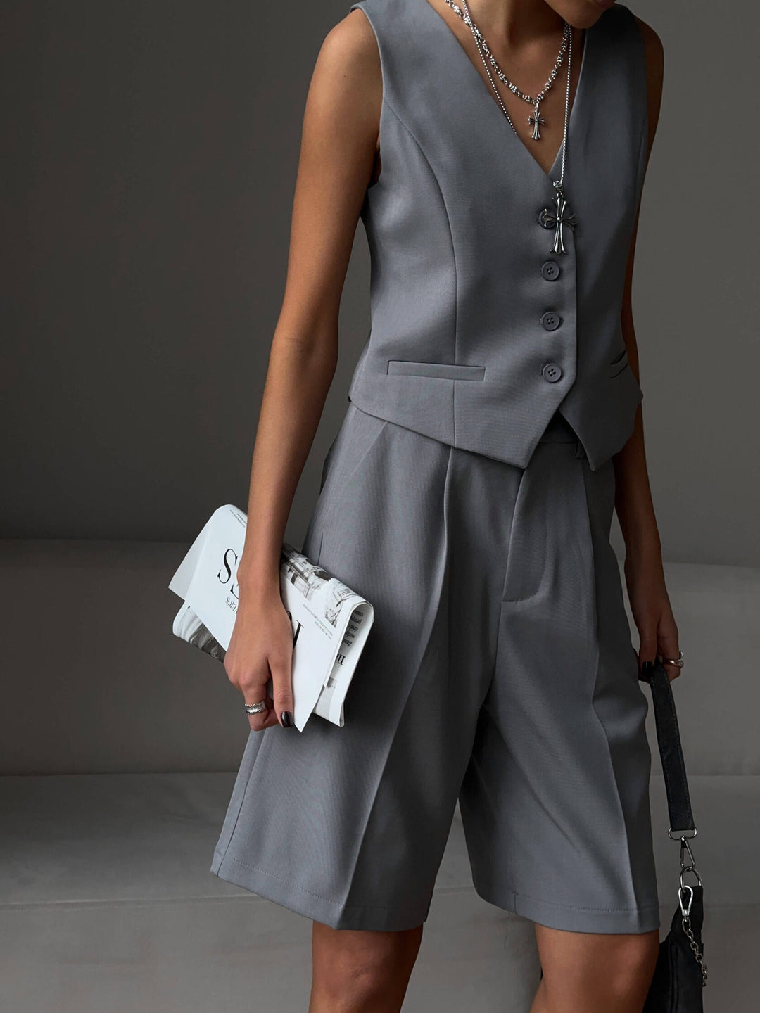 テーラードベストとタック入りのモード感溢れるバミューダパンツのセットです。