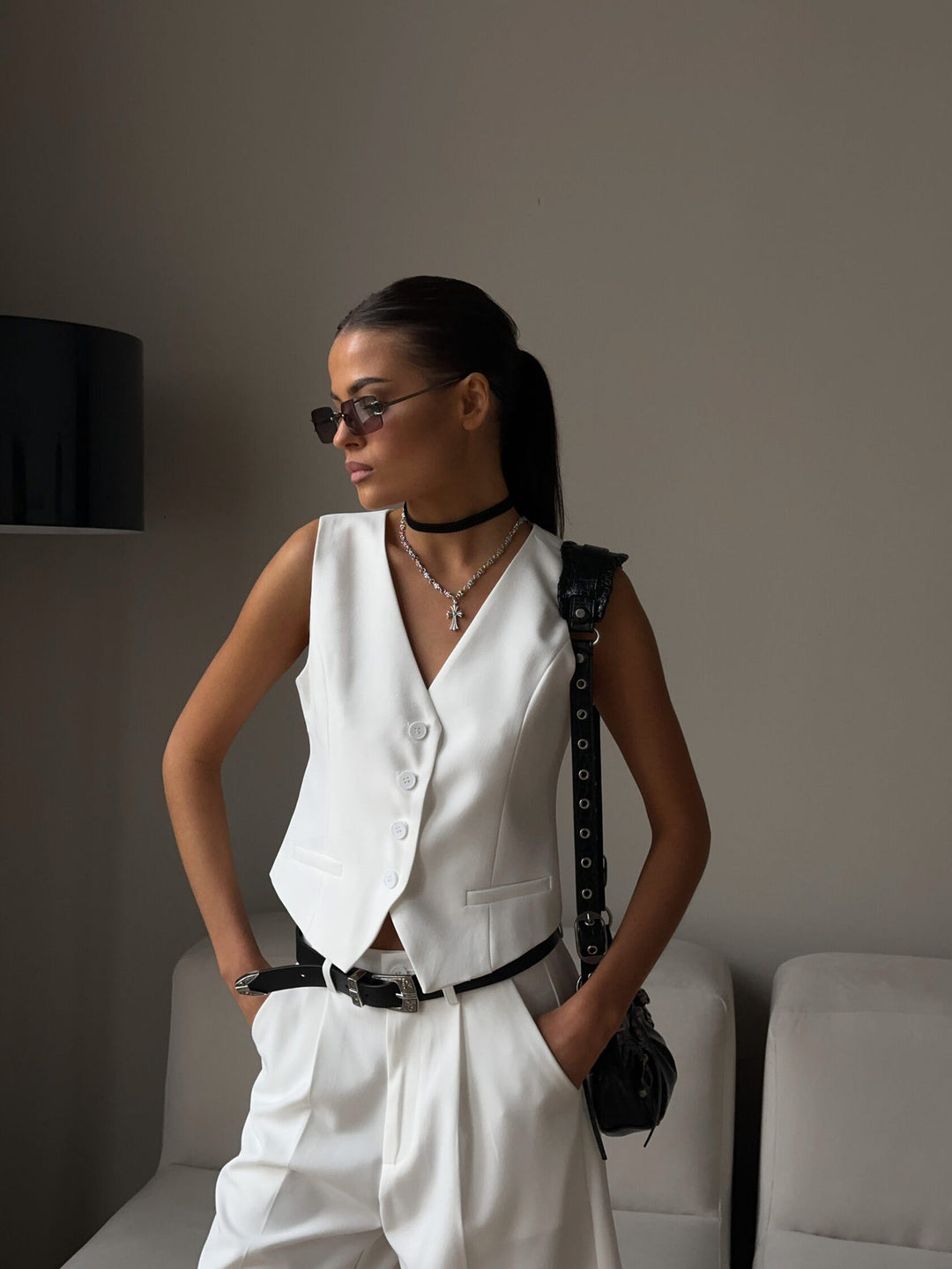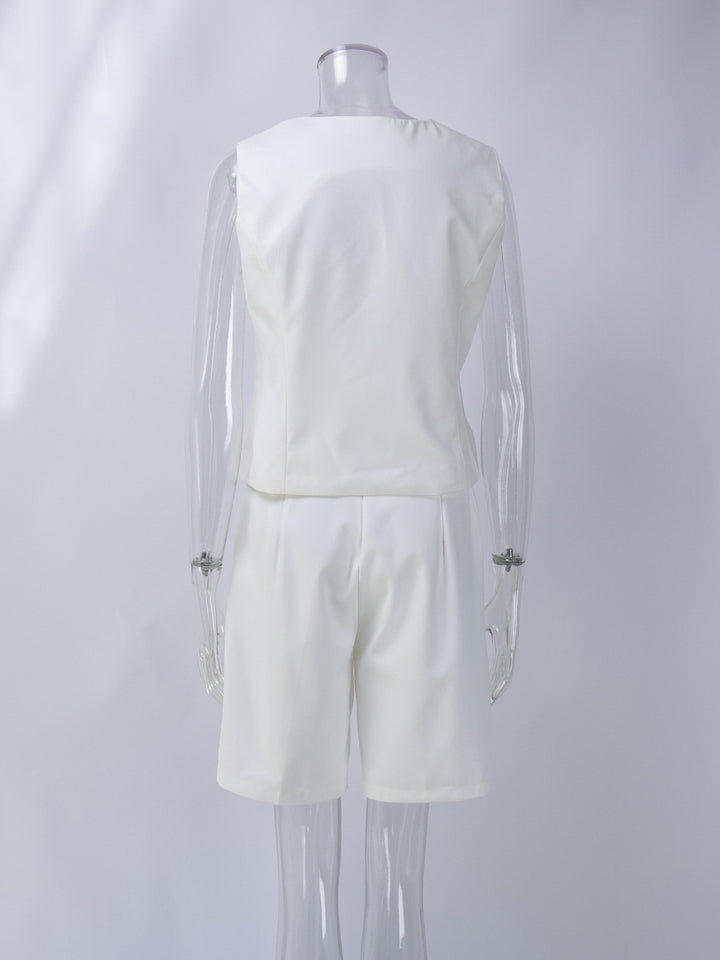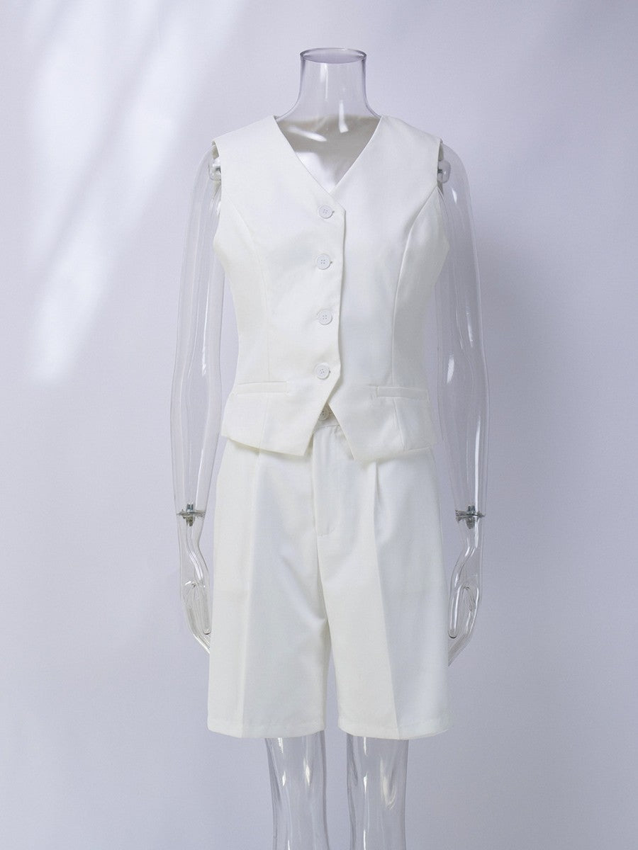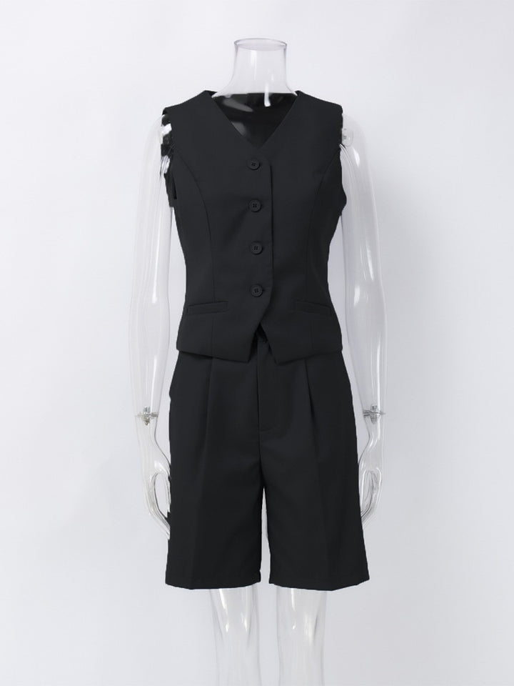 テーラードベストとタック入りのモード感溢れるバミューダパンツのセットです。