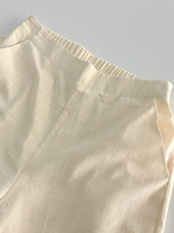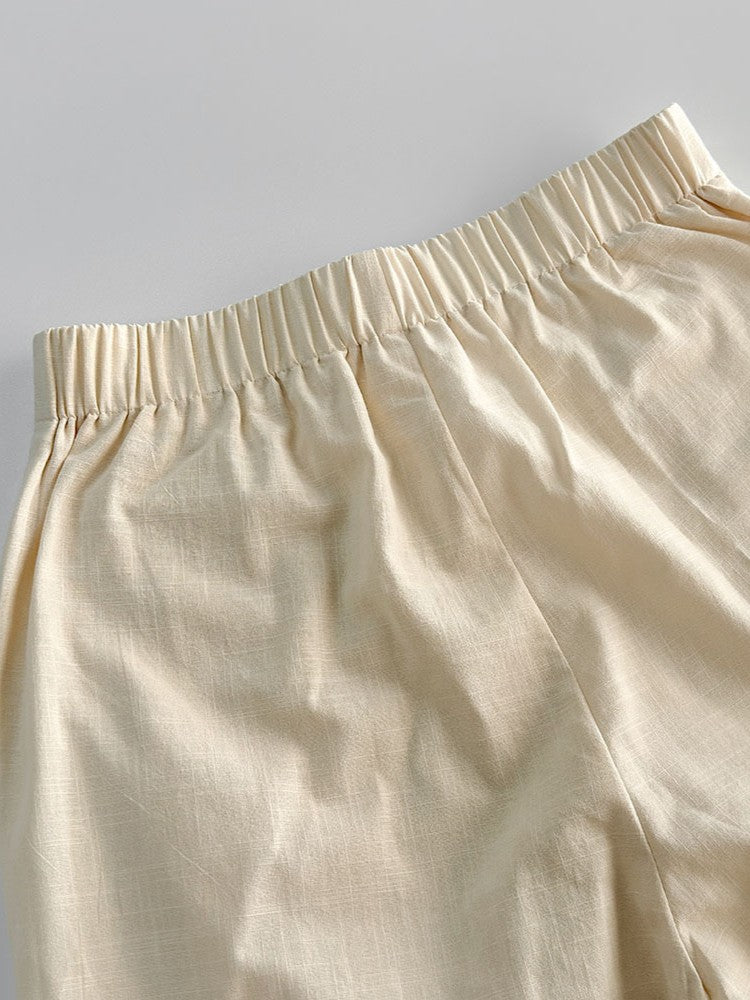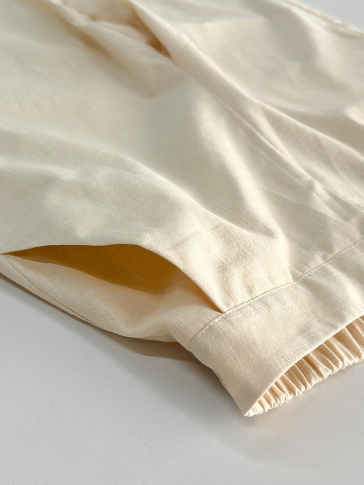 パンツはトラウザーズデザインですがゴム入りで着心地も◎サイドにはポケット付き。