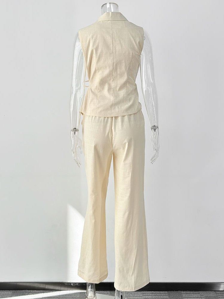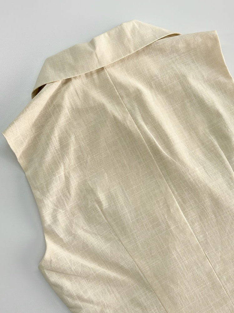ラップタイプのベストはリボンで結ぶので、着用するだけで自然とウエストを引き締めて見せてくれます。