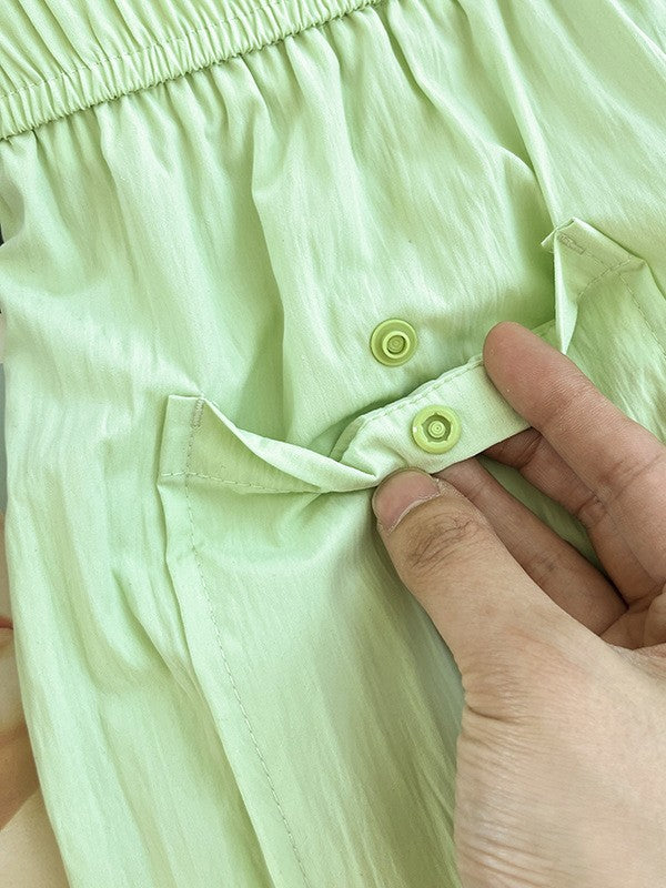 裾のドロストコードを緩めればワイドパンツとしても着用可能!