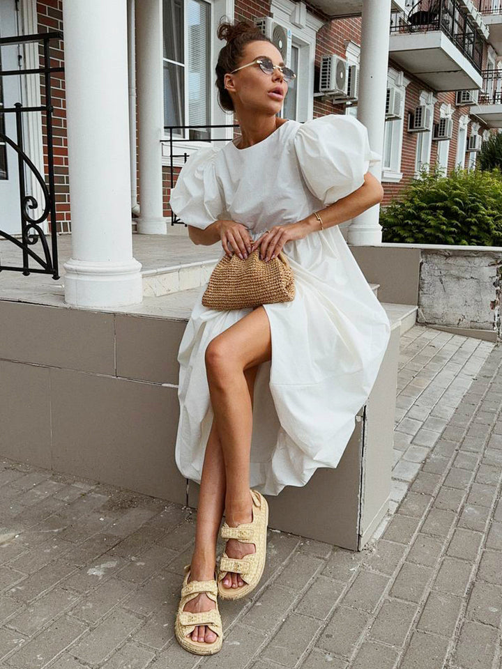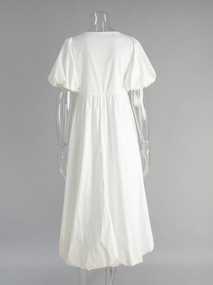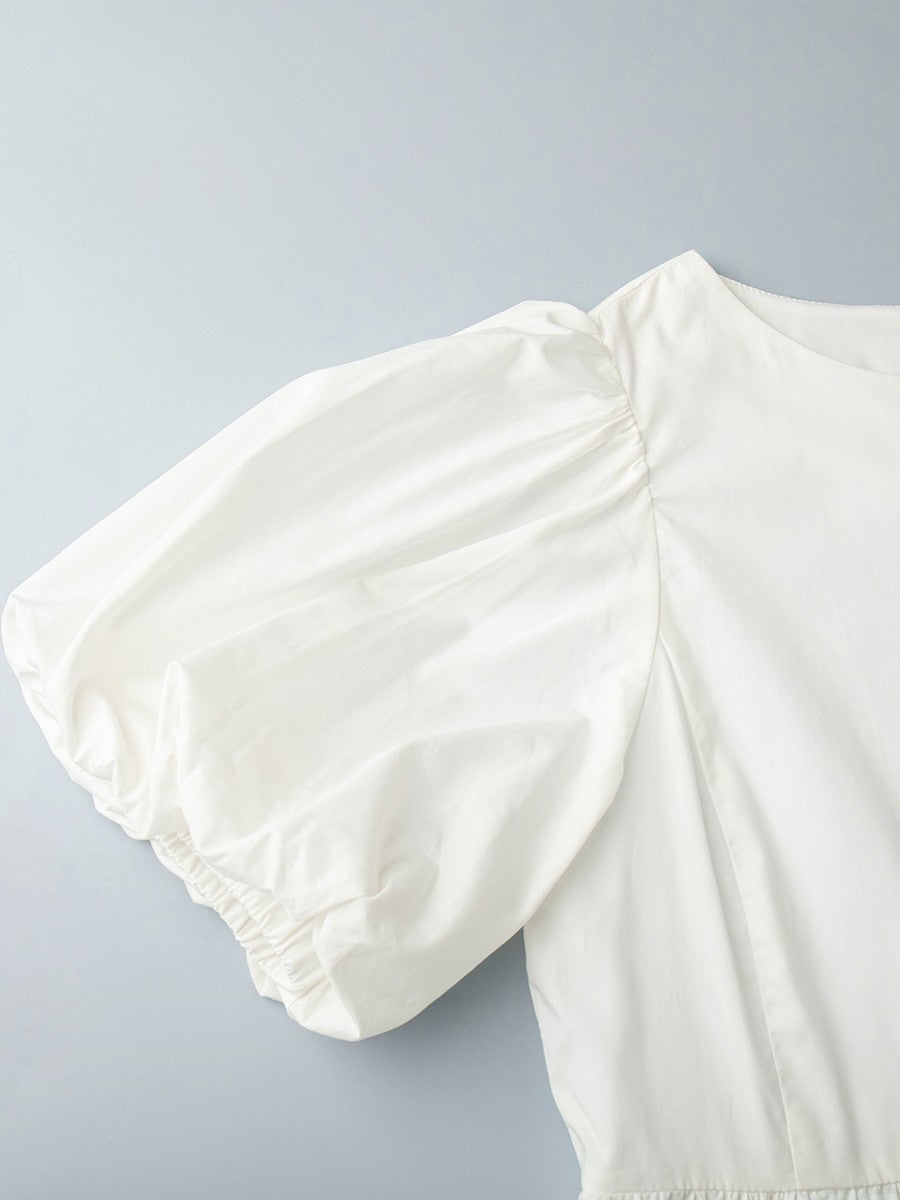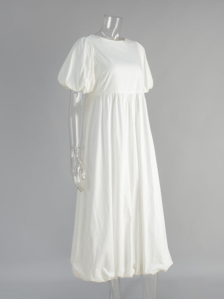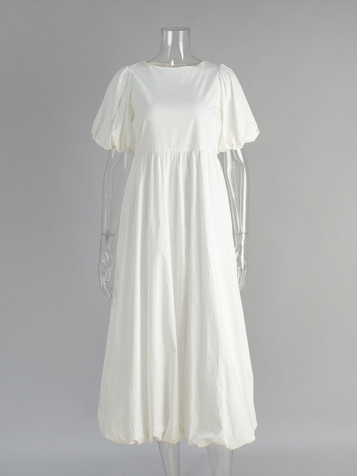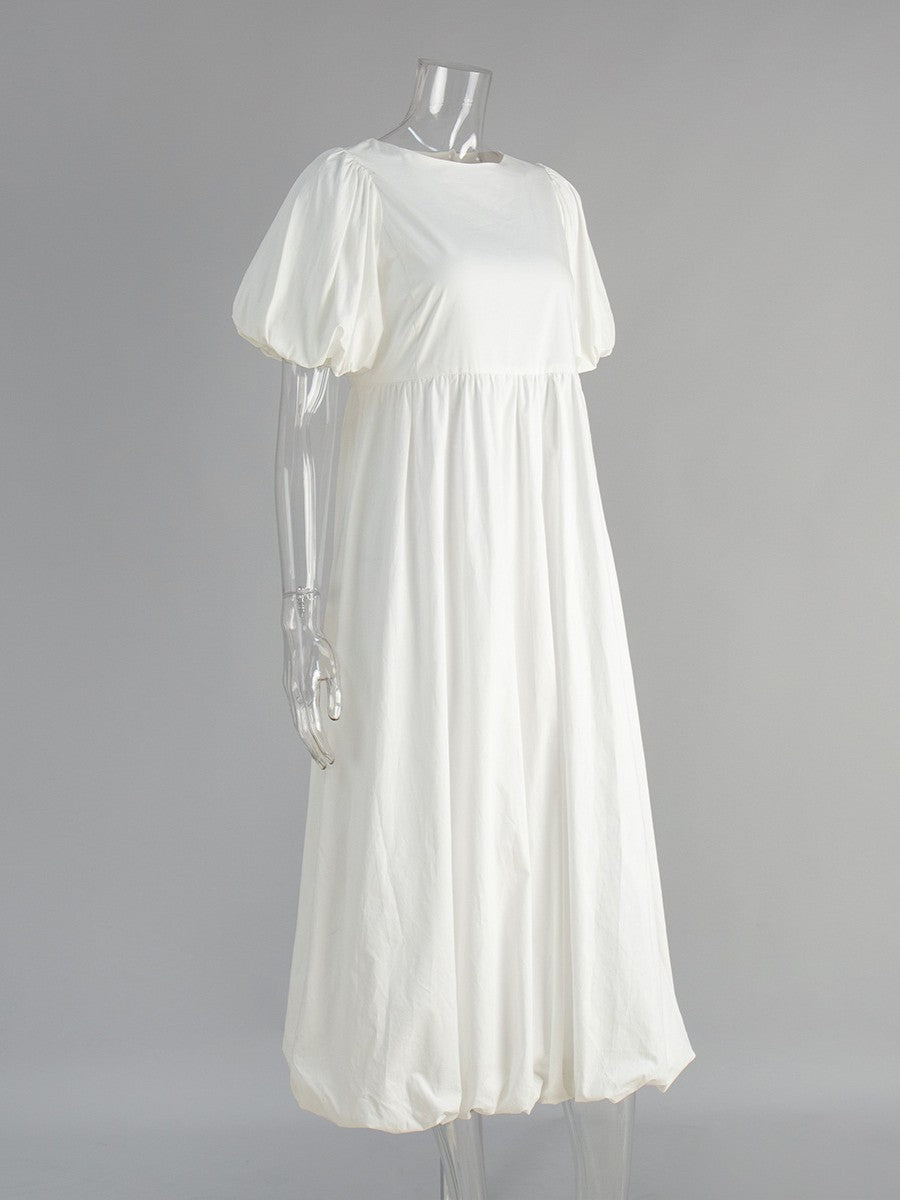 レディライクでロマンティックなムード溢れるワンピースは、バルーンショートスリーブとバルーンシルエットのスカートが、トレンドライク!