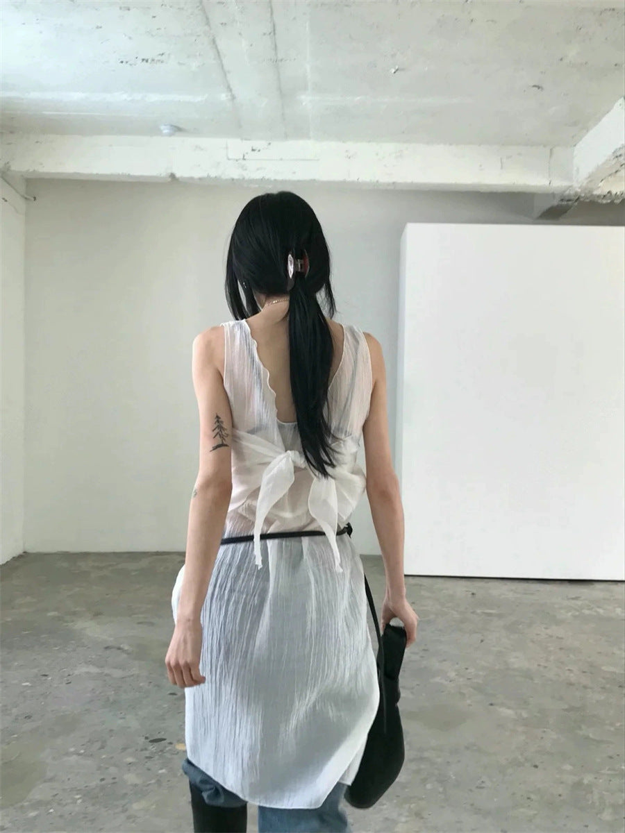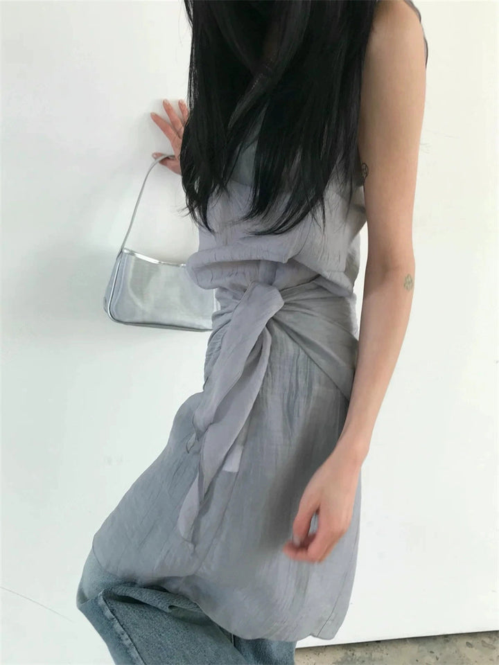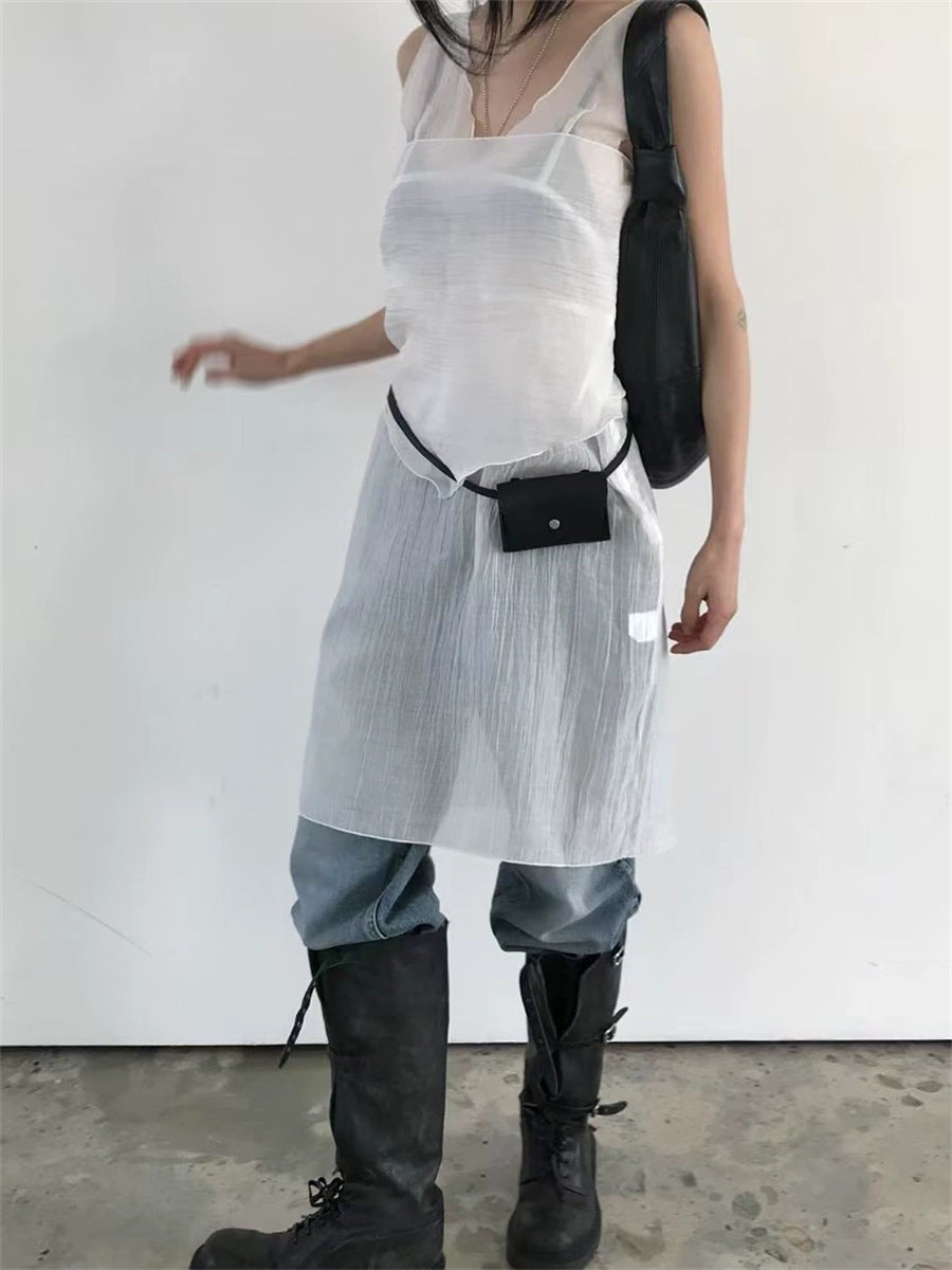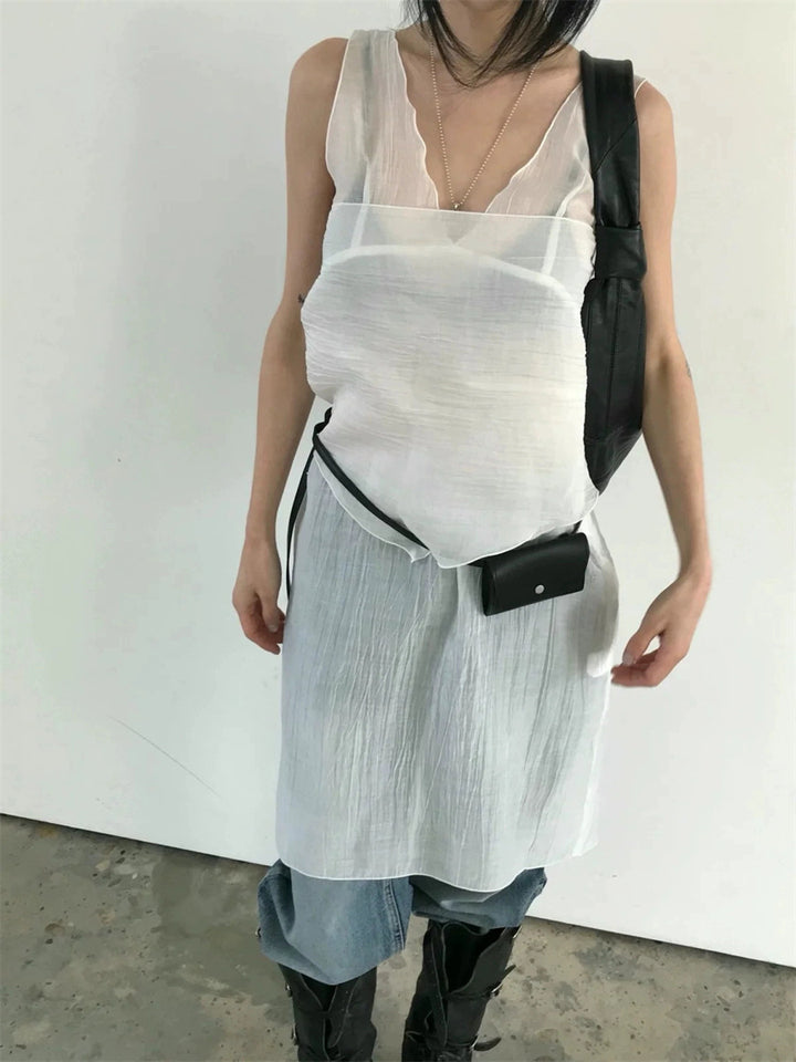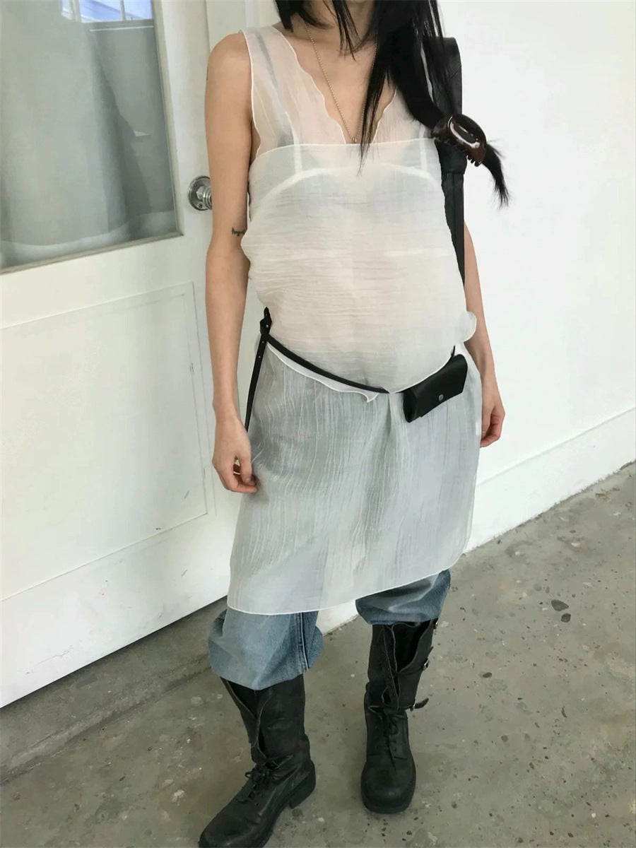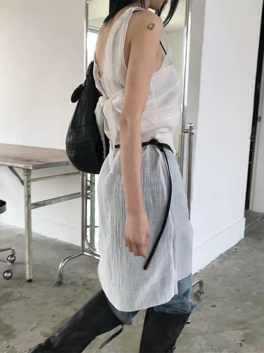 シアーな透け感がトレンドライクなワンピースは、スカーフもセットになっているので、スカーフをウエストに巻いたり、ビスチェのように胸に巻いたりなど、アレンジ次第でいろいろな表情を楽しめます。