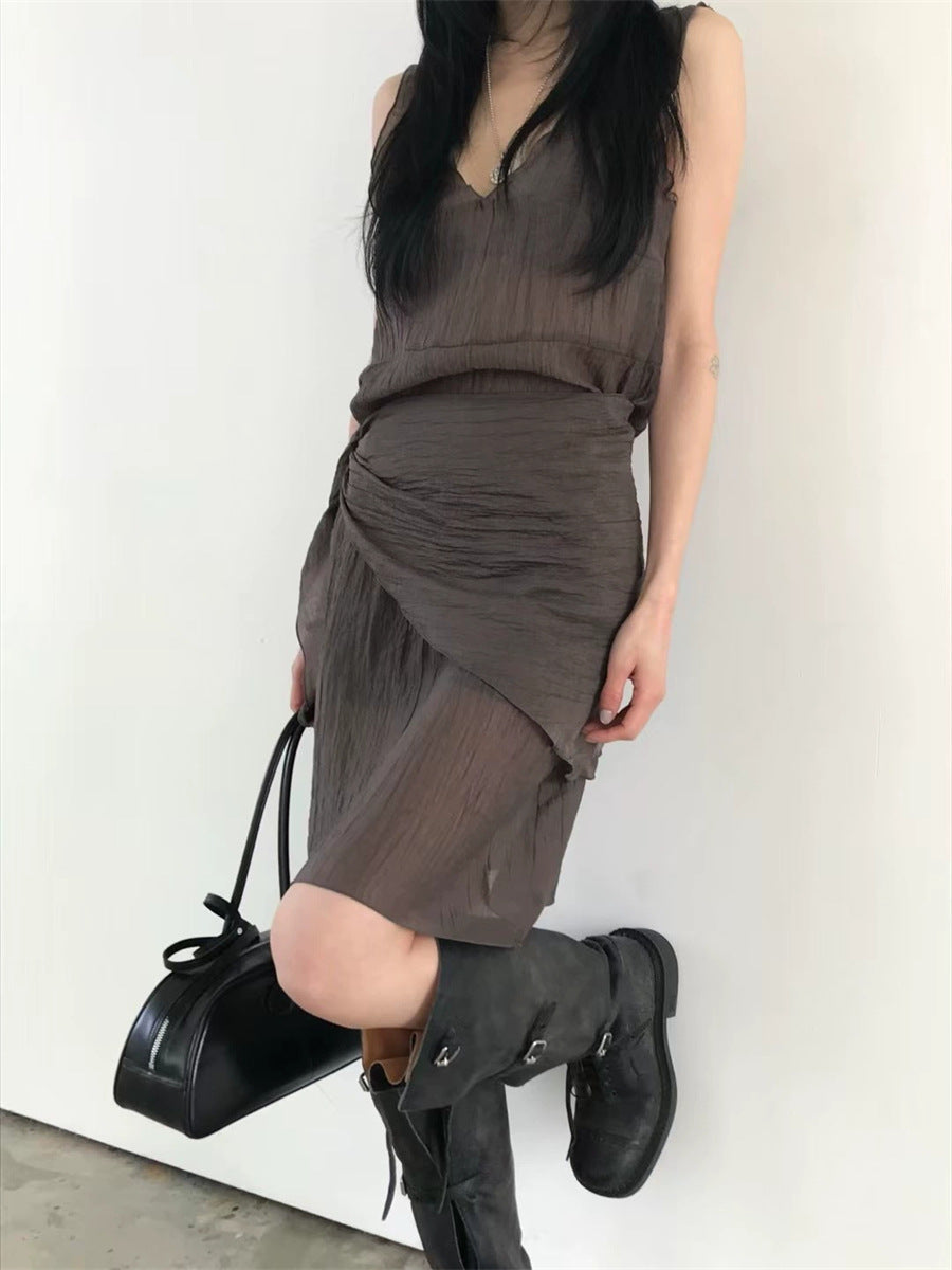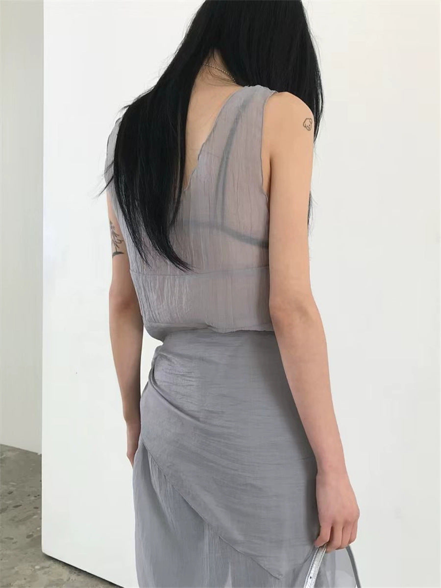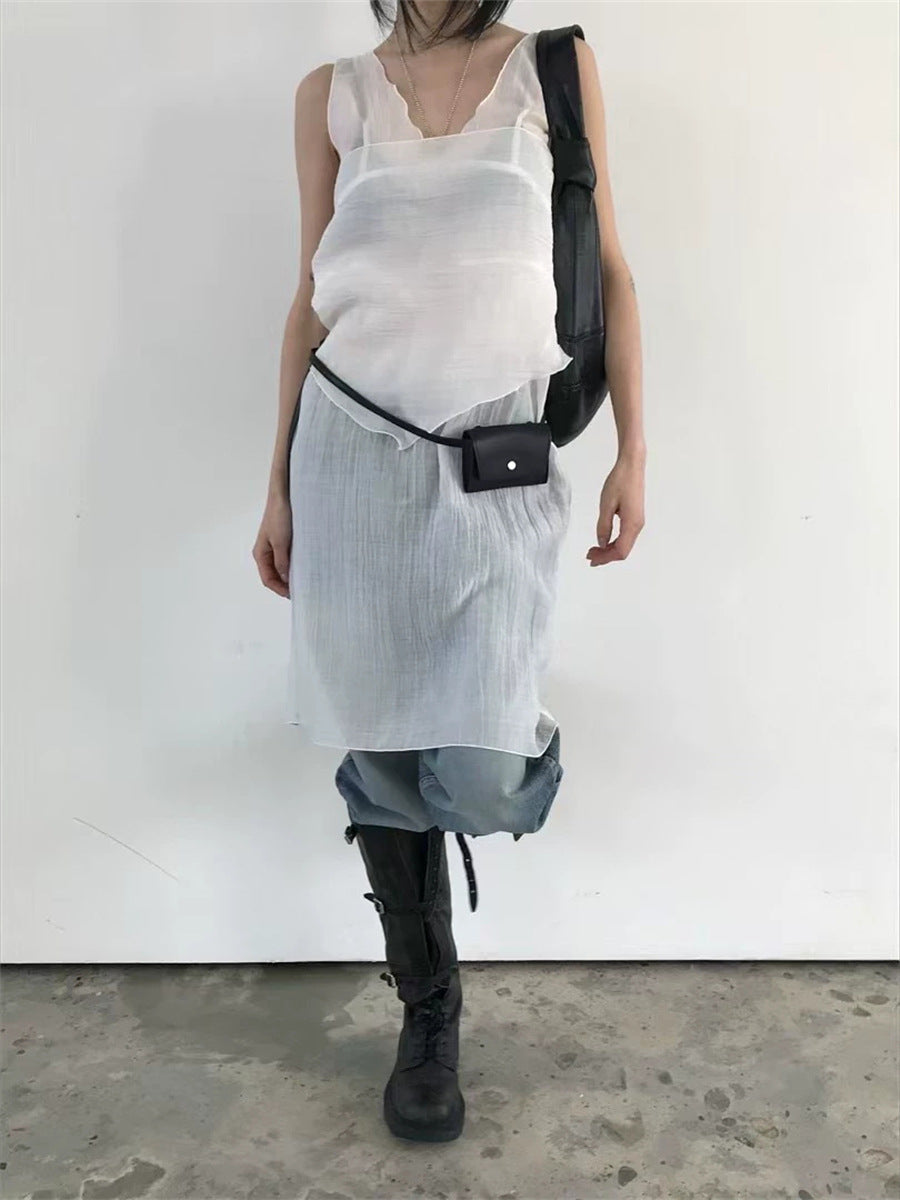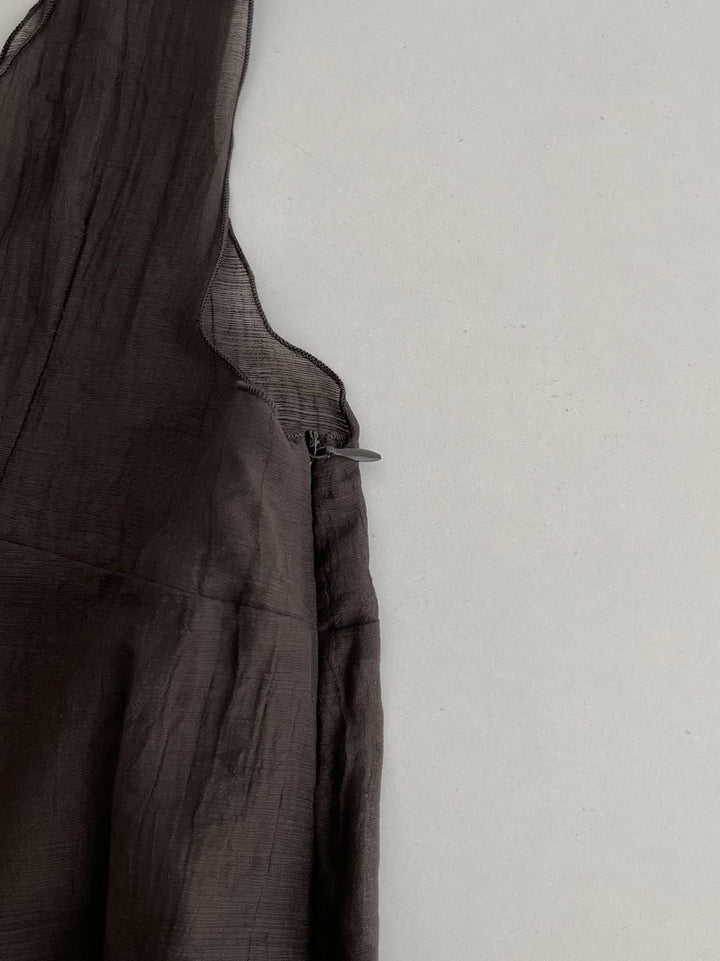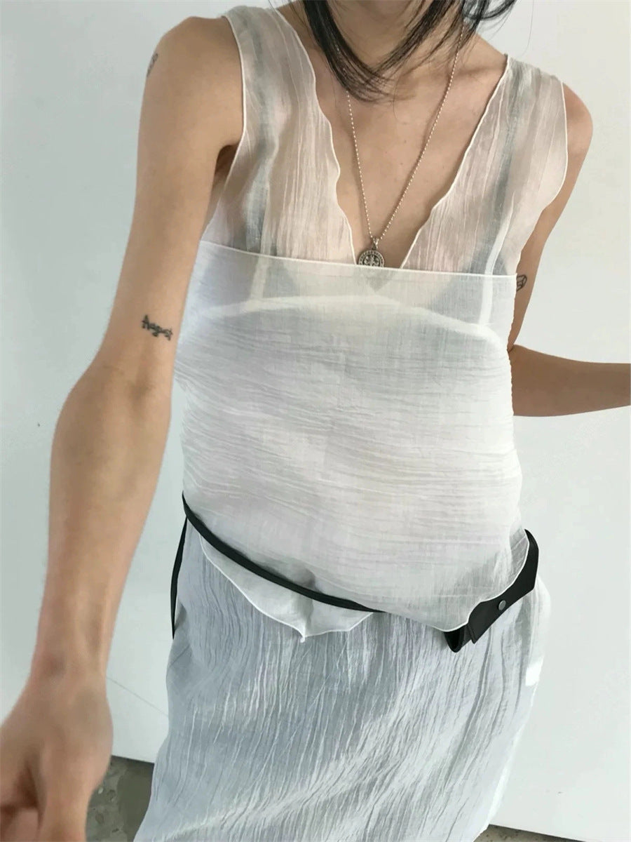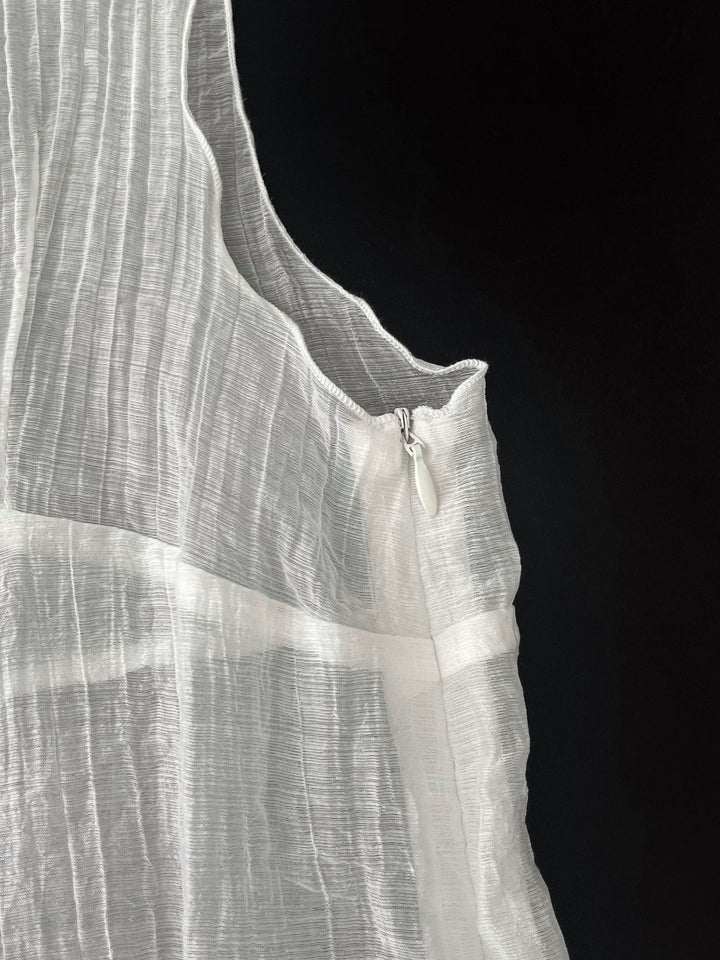 シアーな透け感がトレンドライクなワンピースは、スカーフもセットになっているので、スカーフをウエストに巻いたり、ビスチェのように胸に巻いたりなど、アレンジ次第でいろいろな表情を楽しめます。