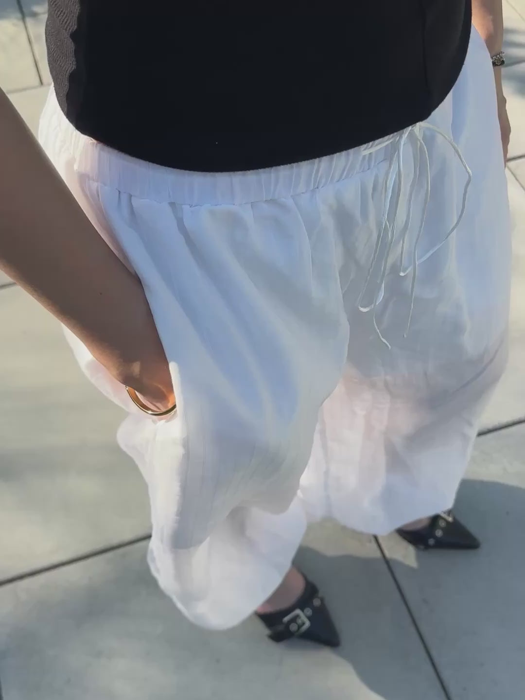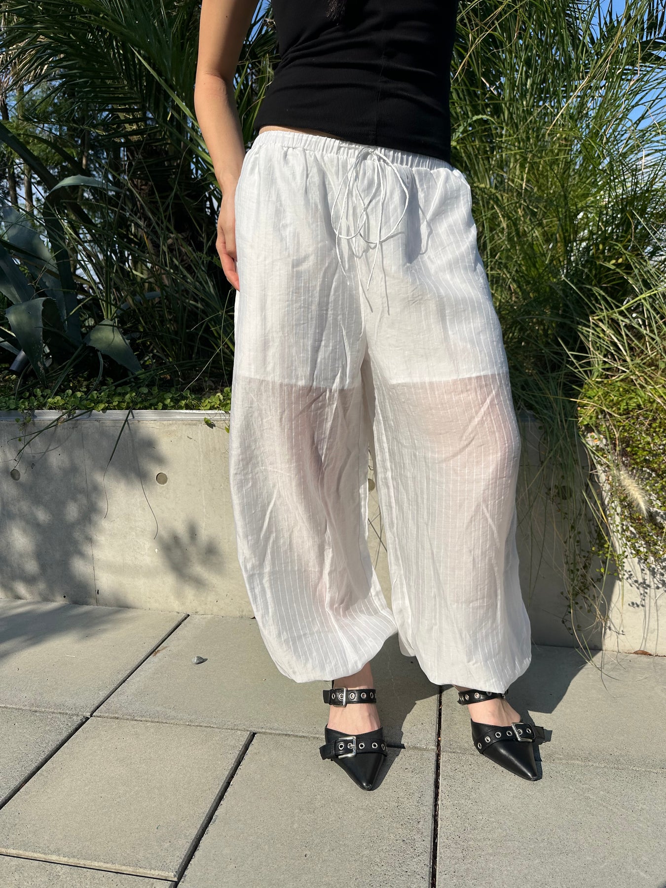 〈サスティナブル〉シアーエアリーバルーンパンツです。