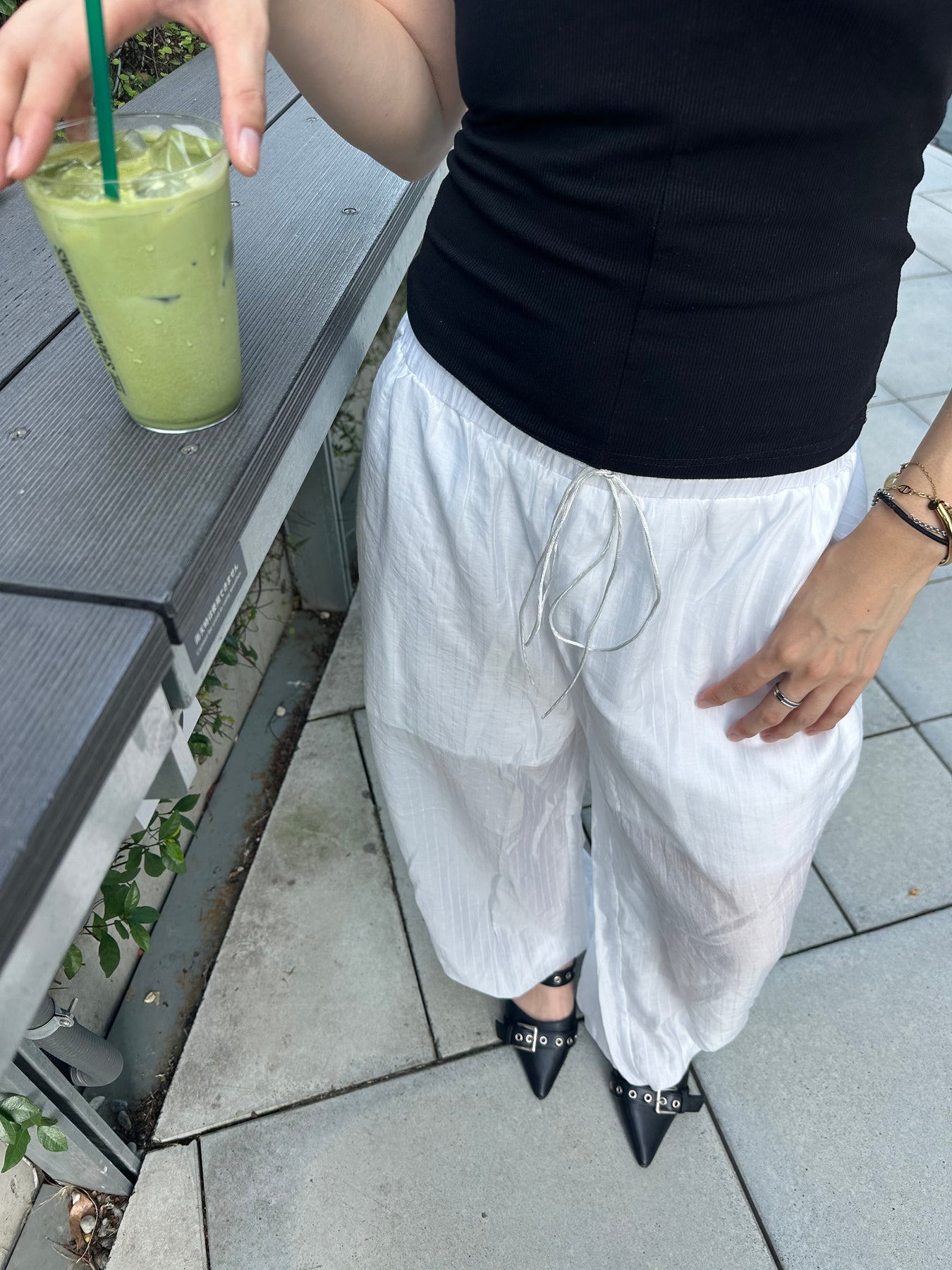 ※足首のリボンは装飾なので、裾周り全体は絞れません。