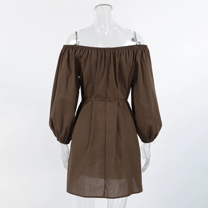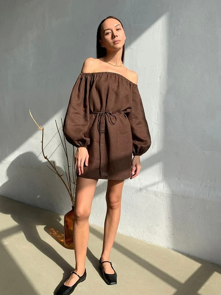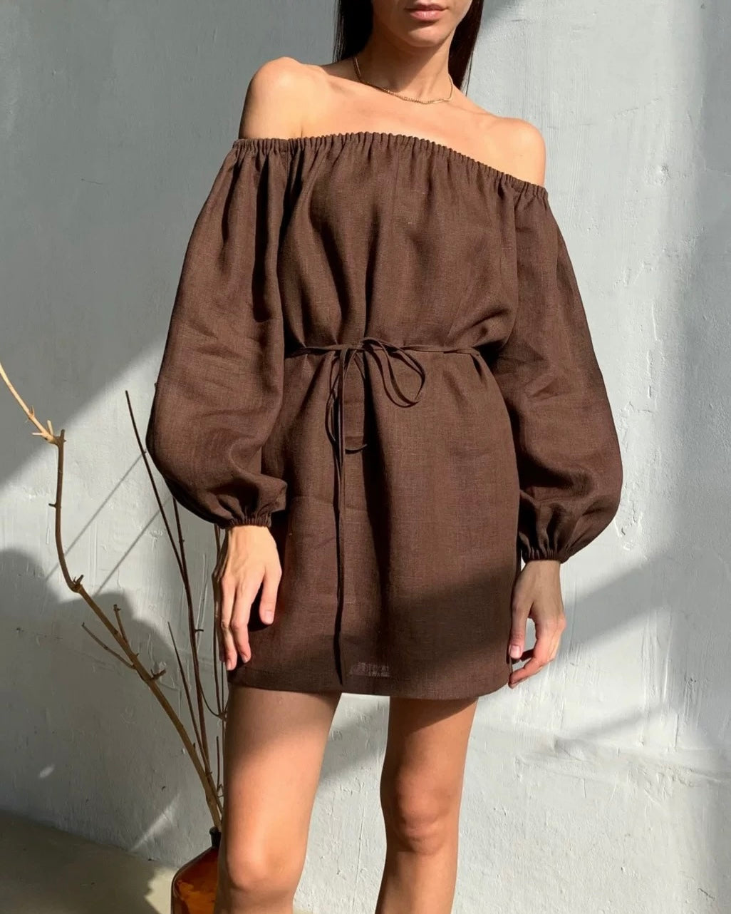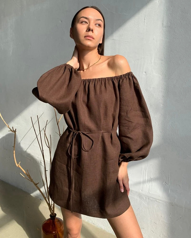ボリュームのあるバルーン袖とすっきり見えるデコルテラインがバランス良く、華奢見えします。