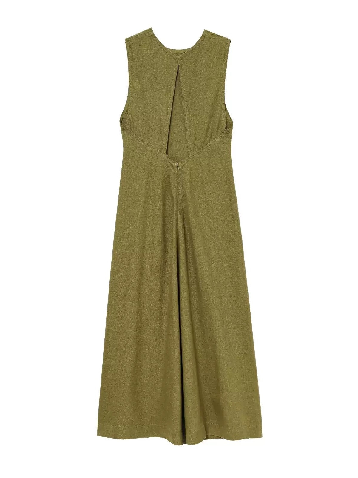 コットンリネンバックオープンスリーブレスワンピースです。