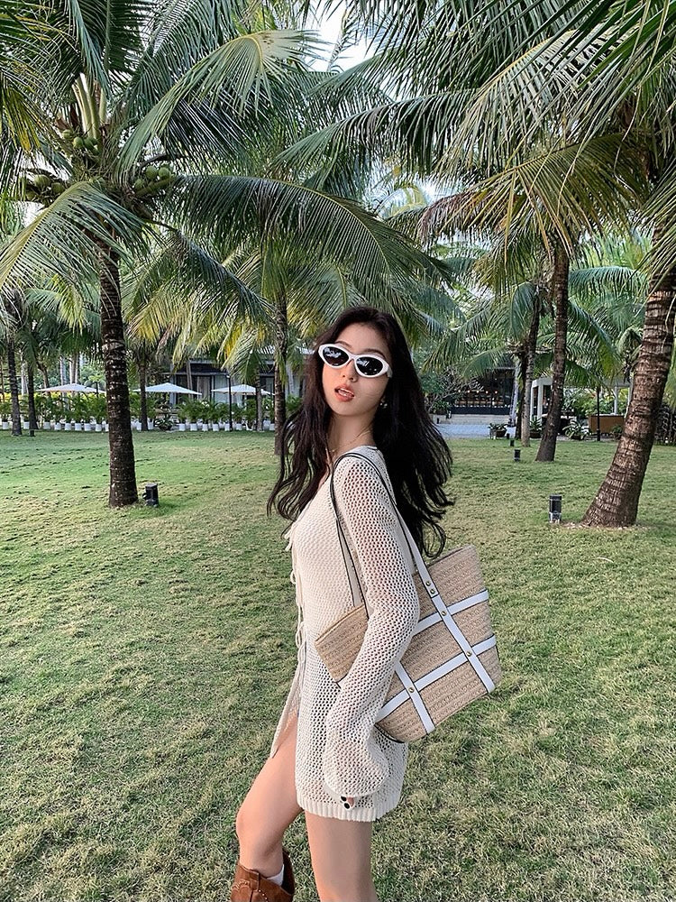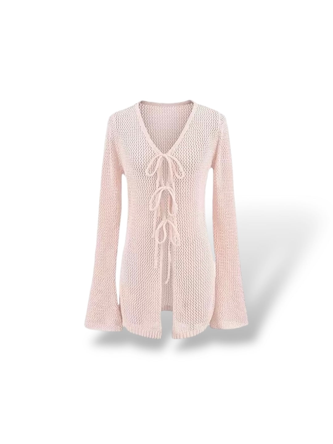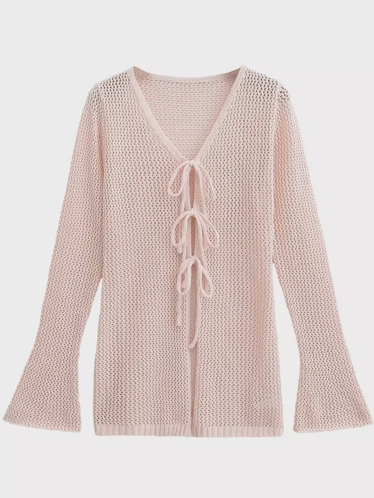 程よい透け感が魅力のメッシュ編みカーディガン。フロントのレースアップデザインが縦ラインを強調し、スタイルアップ効果も叶える1枚です。