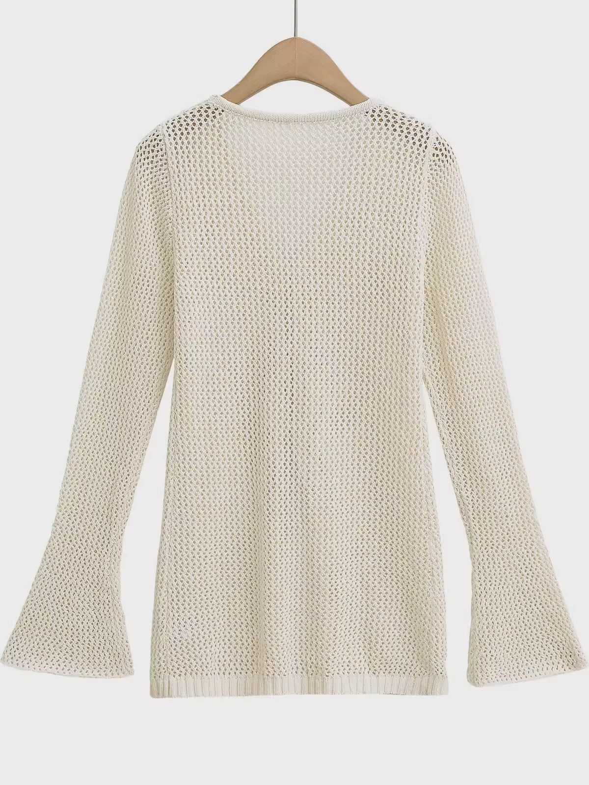 やや長めの丈感とフレアスリーブが、リラックス感のある女性らしいシルエットを演出。